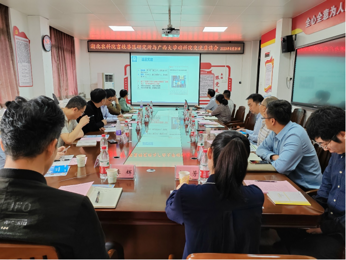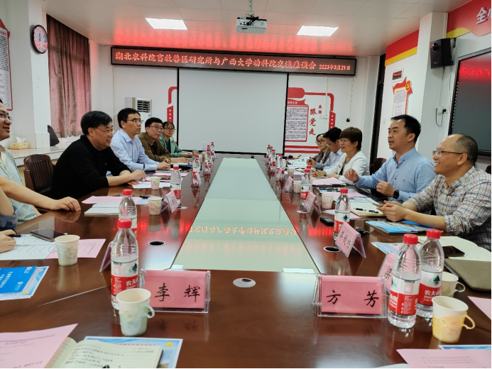 3月22日上午,湖北省农业科公司畜牧兽医研究所党委书记吴恢研究员一行六人来访,在太阳成集团tyc234cc302会议室与公司领导及教师开展团队建设、成果转化和科研平台建设经验座谈交流。座谈交流会由公司党委书记顾慕娴主持,公司经理陆阳清教授、副经理何家康教授和副经理韦祖樟教授、动物科学系和动物医学系的主任及副主任等十多位老师参加了座谈会。