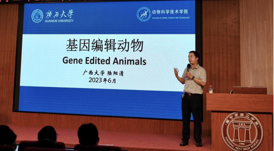 “感染了细菌以后,噬菌体就把病毒的一段DNA整到细菌身上,这个很有意思……”陆教授以基因编辑动物为主题,围绕“什么是基因编辑”、“如何基因编辑”、“基因编辑有何用处”、“基因编辑的科学伦理”等问题展开科普。“基因编辑是一项创造性的工作”,陆教授还以科学扎实的理论结合生动有趣的事例向同学们介绍了基因编辑牛、鸡、鱼等生物,为同学们带来了一场探索“生物基因”的神秘之旅。