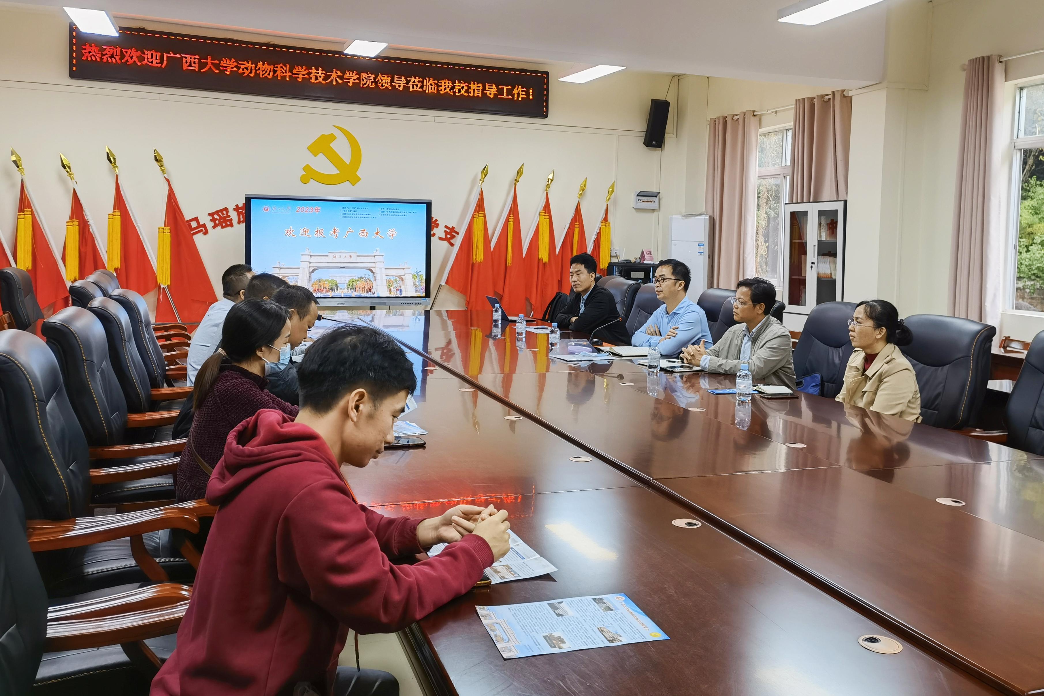 为进一步加大公司招生宣传力度,加强与区内优质中学的沟通联系,11月24日至25日,太阳成集团tyc234cc常务副经理陆阳清,副经理何家康,动物医学系主任陈樱,动物科学系副主任李辉,团委副书记刘诚先后走访都安瑶族自治县高级中学、巴马瑶族自治县高级中学、凤山县高级中学等3所自治区示范性普通高中。
