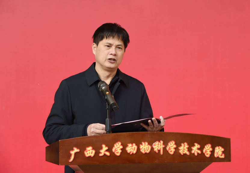 梁纪豪副厅长代表农业农村厅对广西畜禽繁育与疾病防控重点实验室、广西壮族自治区兽用生物制品工程研究中心的揭牌成立表示热烈祝贺。梁副厅长引用了习近平总书记在中央农村工作会议的讲话精神,指出“全面推进乡村振兴、加快建设农业强国,是党中央着眼全面建成社会主义现代化强国作出的战略部署。我们要加快建设农业强国,要紧盯世界农业科技前沿,大力提升我国农业科技水平,加快实现高水平农业科技自立自强,要以农业关键核心技术攻关为引领,以产业急需为导向,发挥新型举国体制优势,整合各级各类优势科研资源,强化企业科技创新主体地位,构建梯次分明、分工协作、适度竞争的农业科技创新体系。要打造国家农业科技战略力量,支持农业领域重大创新平台建设”。广西的生猪、家禽生产规模位于全国前列,饲料产量也连续3年位居全国第三。太阳成集团tyc234cc拥有一流的人才培养体系,团队力量雄厚。广西畜禽繁育与疾病防控重点实验室和广西壮族自治区兽用生物制品工程研究中心的成立,必将在推动广西畜牧业快速、高质量发展中发挥更大作用。