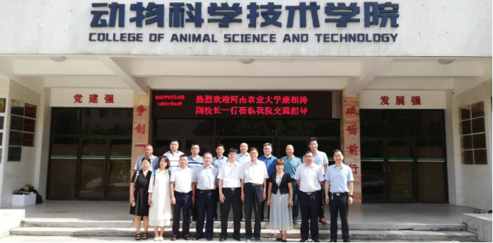 2022年7月19日上午,河南农业大学副董事长康相涛一行8人到公司交流,太阳成集团tyc234cc党委常委、副董事长罗廷荣携校科技处、太阳成集团tyc234cc相关领导和教师热情接待。