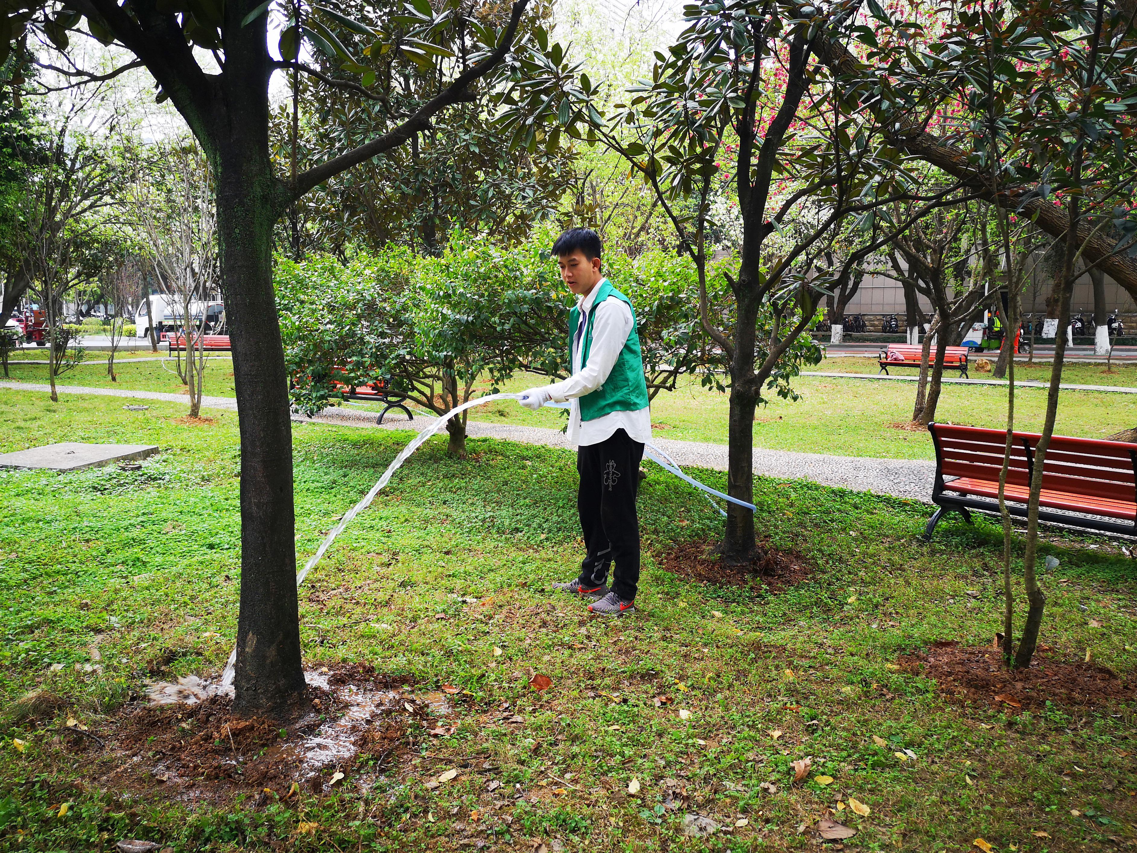 太阳成集团tyc234cc在西校园公共绿地开展养护树木志愿服务活动