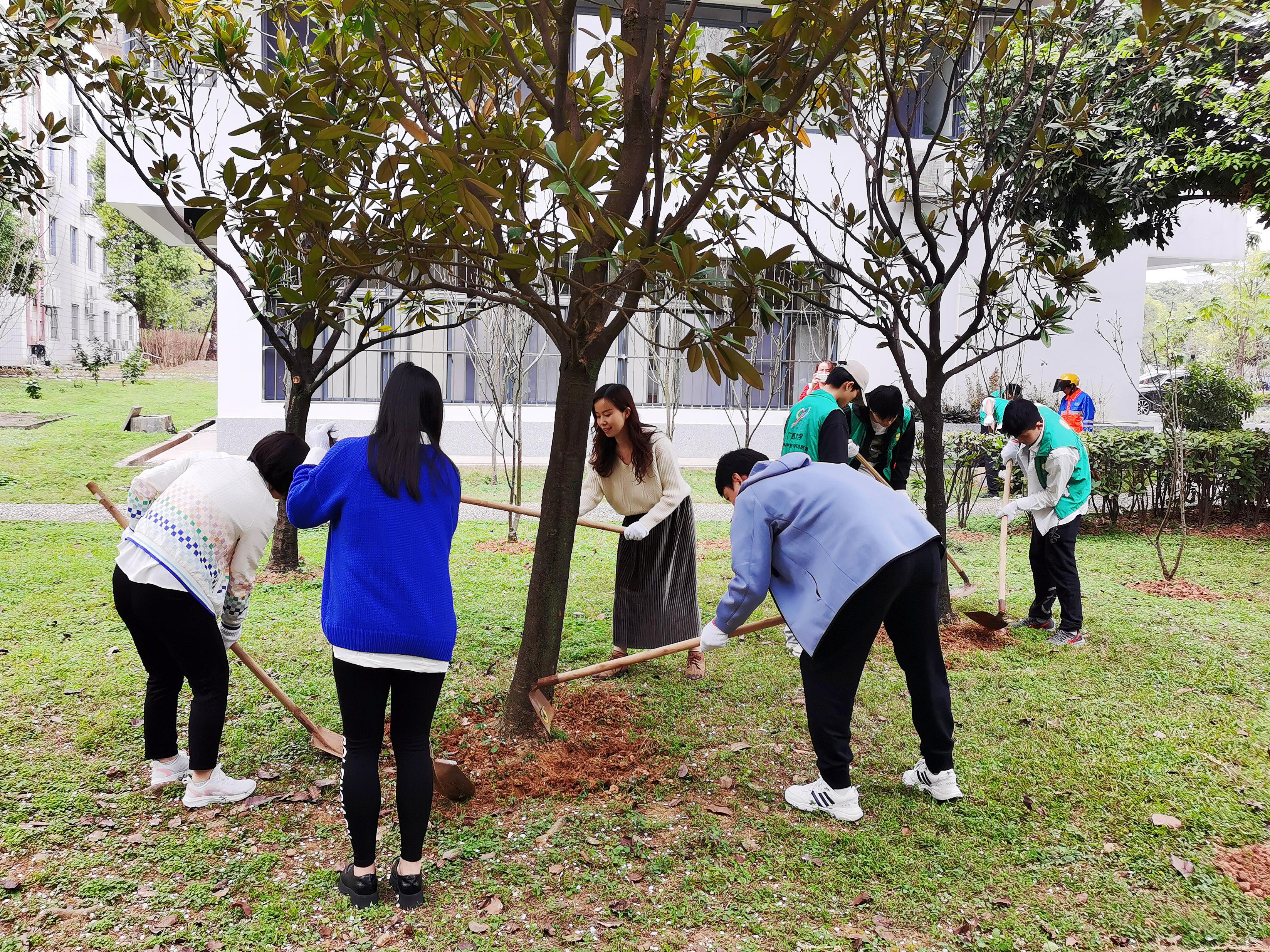 阳春三月,百卉含英。3月12日下午,太阳成集团tyc234cc30余名志愿者来到西校园公共绿地开展“传承雷锋精神,弘扬时代新风”养护树木志愿服务活动。