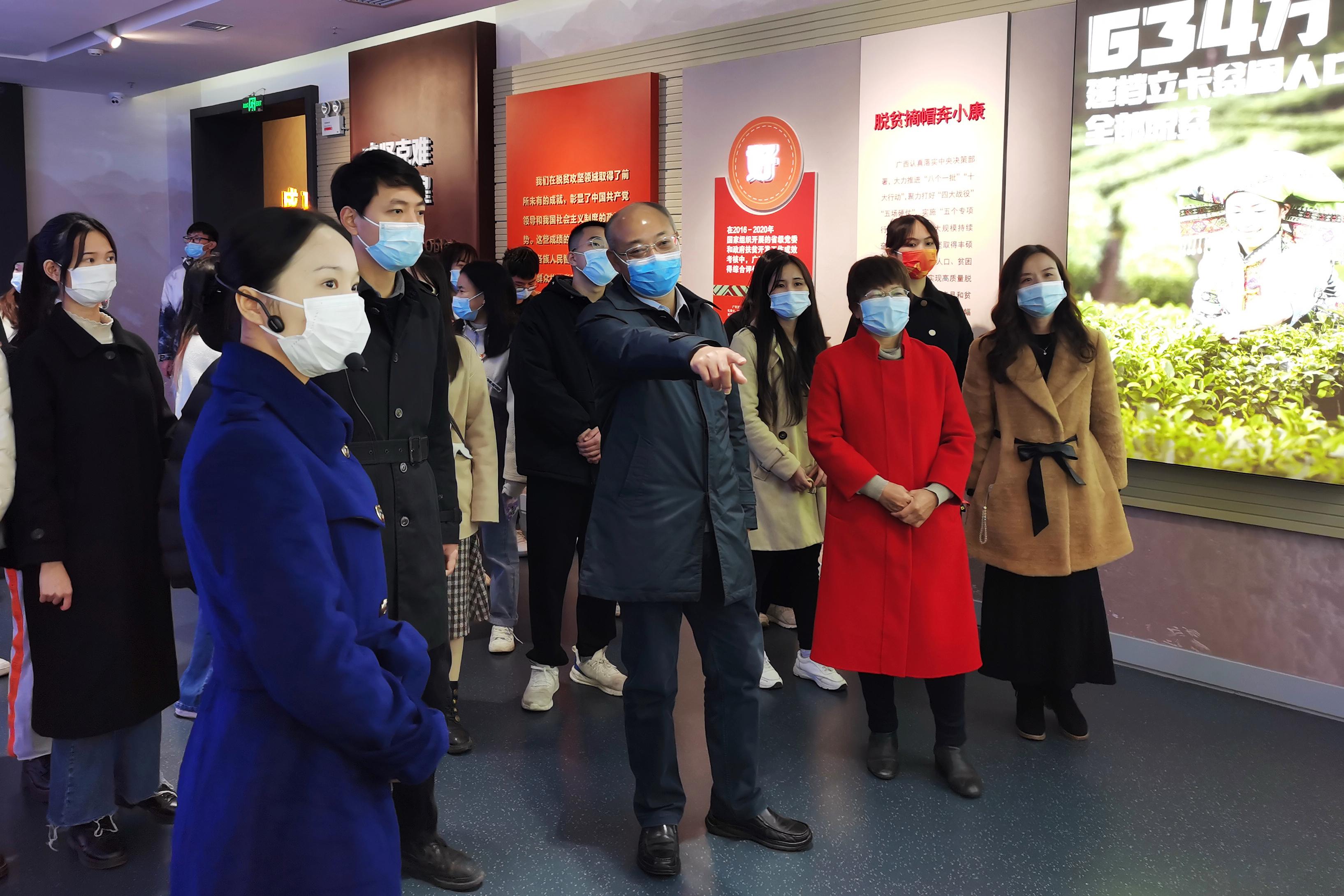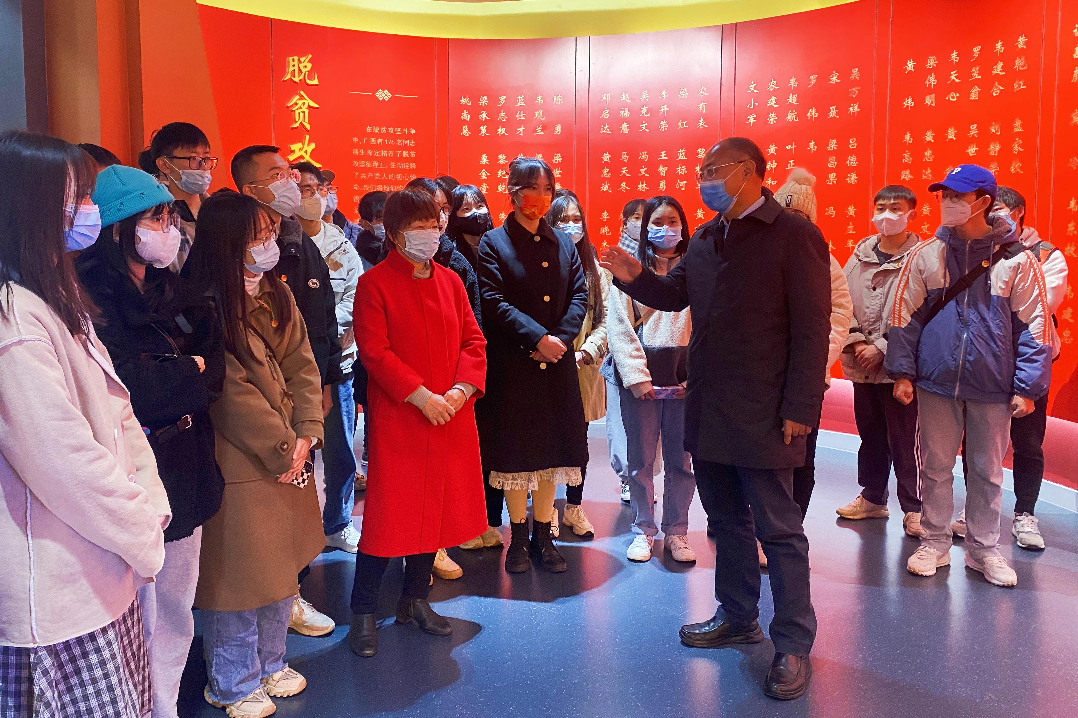 冯家勋副董事长在参观过程中,结合自身实际,对“上下同心、尽锐出战、精准务实、开拓创新、攻坚克难、不负人民”的脱贫攻坚精神进行了生动诠释,并鼓励同学们坚定理想信念,练就过硬本领,传承红色基因,赓续精神血脉,为全面推进乡村振兴贡献智慧和力量。