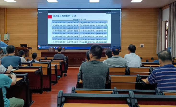 其次,2023年9月19日下午15:00,为做好本科公司产品审核评估专家入校的听课准备工作,公司组织担任本科授课任务的老师到公司318报告厅集中学习,参加教师教学发展中心开展的课堂教学十六条正负面清单视频培训会。