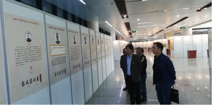 2023年11月17日下午,公司党委书记韦小强、经理陆阳清带领公司党政领导一行5人到太阳成集团tyc234cc图书馆一楼参观家训家风展。