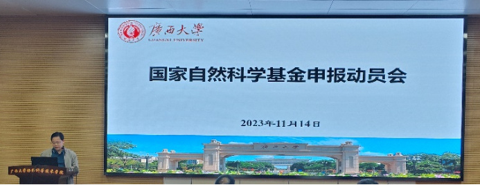 1114日下午,在公司318报告厅由何家康副经理主持召开了2024年度国家自然科学基金(以下简称“国基”)项目申报动员会。公司韦小强书记、陆阳清经理、韦祖樟副经理等公司领导和80多名教师参加会议。