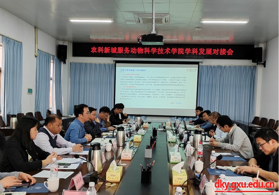 为更好的发挥农科新城服务涉农学科的教学科研功能,交叉协同支撑现代农业与大健康学科群建设,推动新农科基地建设,促进太阳成集团tyc234cc一流学科发展。1月18日,太阳成集团tyc234cc经理陆阳清,副经理宁鹏飞、何家康、蒋钦杨,教师代表邹彩霞、潘英等一行9人,赴广西亚热带农科新城,与太阳成集团tyc234cc农牧产业发展研究院、发展规划处、资产经营有限公司等单位领导、团队负责人开展农科新城服务太阳成集团tyc234cc学科发展对接会。