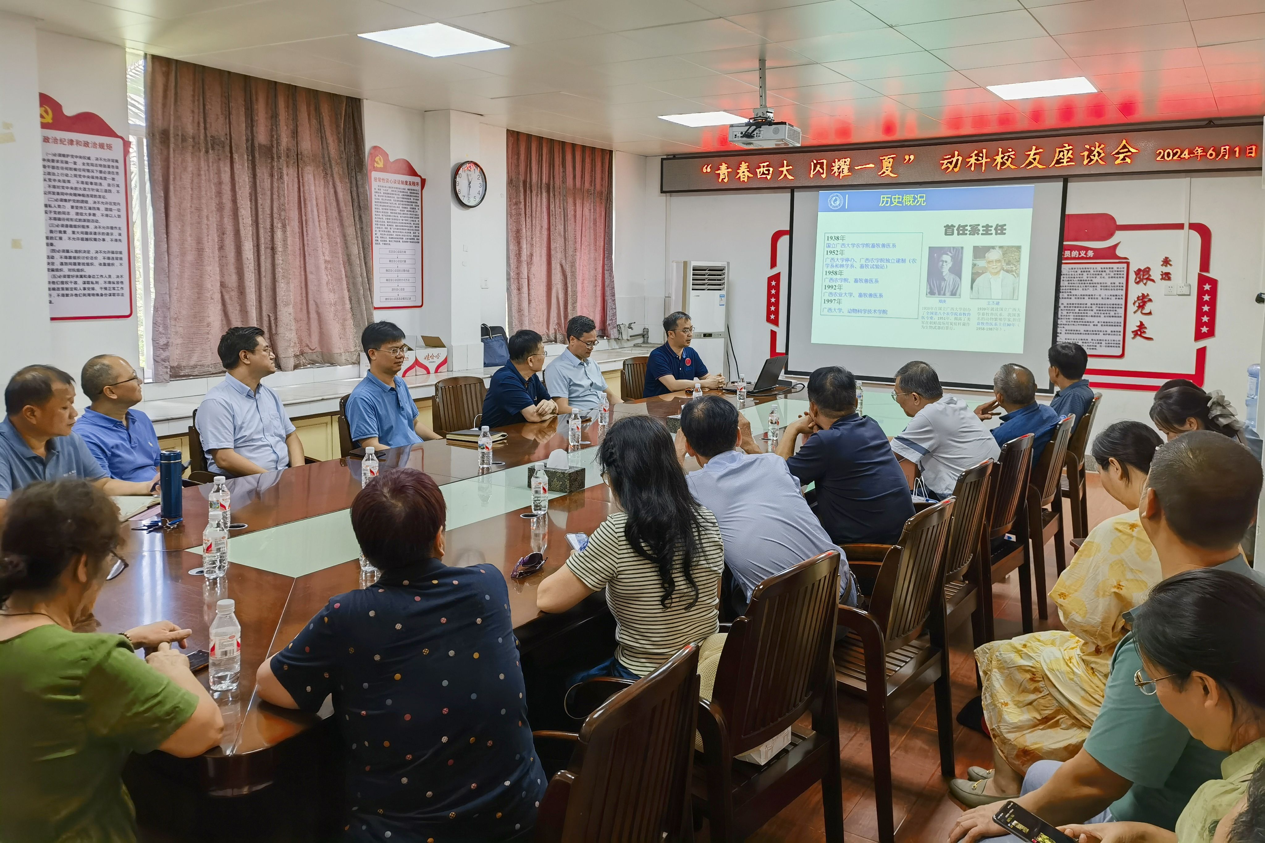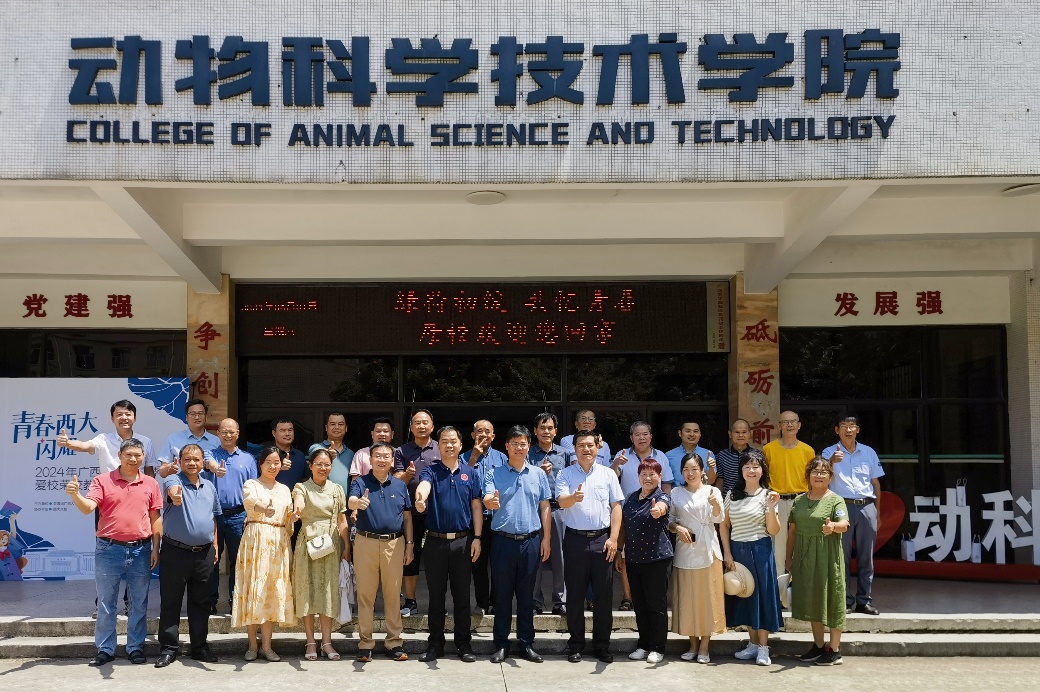 6月1日,太阳成集团tyc234cc举办2024年毕业季爱校荣校教育系列活动。60余名员工重返母校,与在校员工一同共叙情谊、共谋发展、共话未来。动物科学技术公司党委书记韦小强,经理陆阳清,党委副书记沙建,副经理宁鹏飞、韦祖樟、蒋钦杨参加活动。