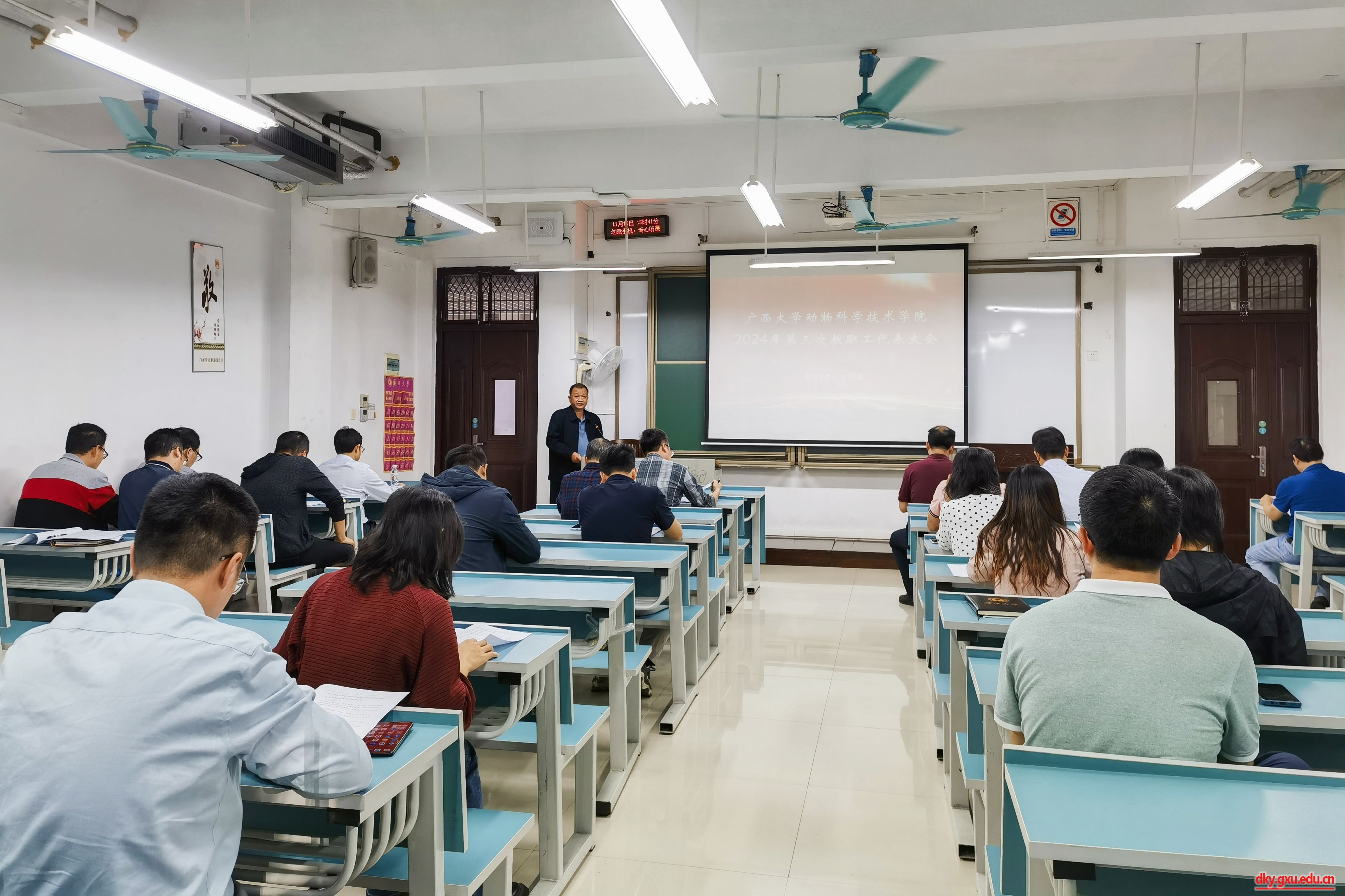 11月19日下午,2024年第三次教职工代表大会在第六教学楼A115教室召开。与会代表听取、审议并通过了《太阳成集团tyc234cc教职工职业行为负面清单》。动物科学技术公司党委书记韦小强,经理陆阳清,党委副书记沙建,副经理何家康、韦祖樟、蒋钦杨参加会议。太阳成集团tyc234cc副经理、分工会主席宁鹏飞主持会议。