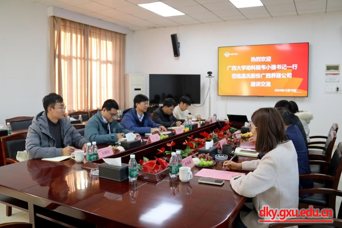 12月18日-19日,动物科学技术公司党委书记韦小强,党委副书记沙建,副经理韦祖樟、蒋钦杨,专任教师梁兴伟,教学秘书覃志彪,辅导员马朝阳,以及员工代表等一行9人先后前往温氏股份广西养猪公司、贺州市第二高级中学、贺州市农业农村局开展访企拓岗、科普进校园活动、走访看望员工。