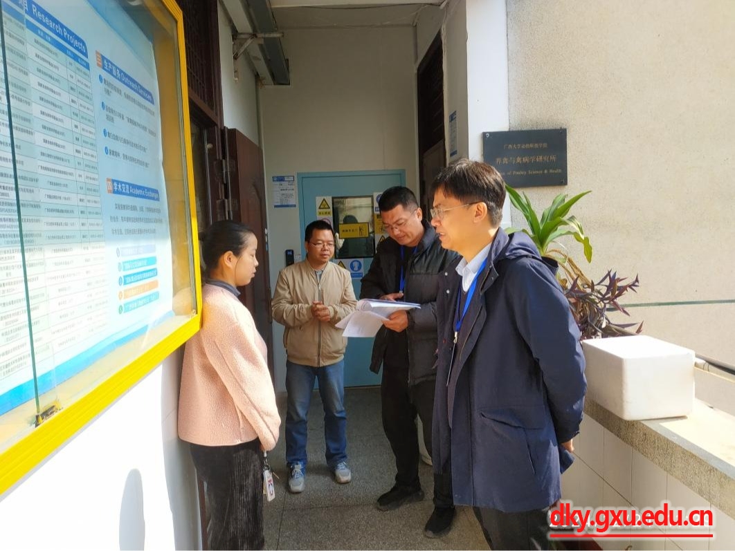 为贯彻落实2024年实验室安全文化月活动要求和太阳成集团tyc234cc实验室安全月活动工作安排,12月24日上午,太阳成集团tyc234cc动物科学技术公司党委书记韦小强,副经理蒋钦杨一行带队分两组对全院实验室展开岁末年初实验室进行安全隐患大排查。