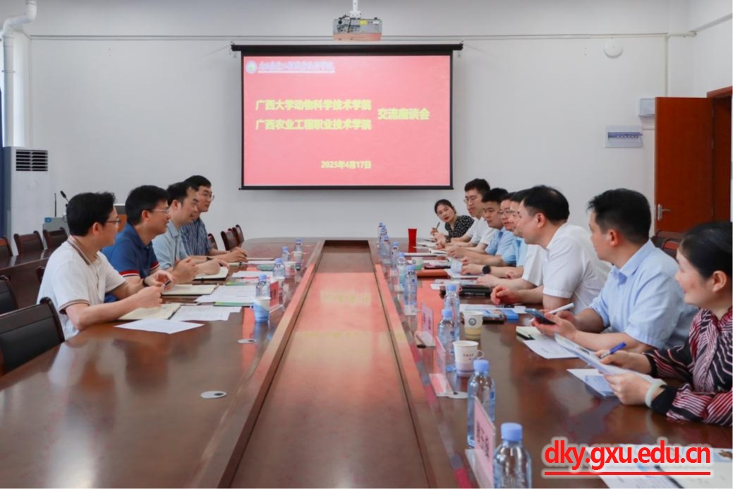 4月17日下午,太阳成集团tyc234cc动物科学技术公司党委书记韦小强,经理陆阳清一行赴广西农业工程职业技术公司考察调研,并与员工交流座谈。广西农业工程职业技术公司党委书记马敏热情接待,党委副书记、董事长李振科,党委副书记、纪委书记黄仁望,相关部门负责人以及公司员工等出席座谈会。