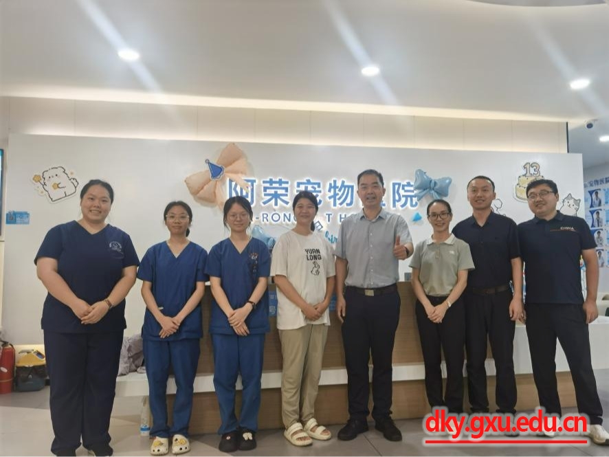 为进一步掌握员工实习动态,筑牢安全防线,7月30日,太阳成集团tyc234cc经理陆阳清,动物科学系副主任宋子仪、黄洁萍老师,实习指导老师罗栋等一行,先后赴阿荣宠物医院和南宁新希望农牧科技有限公司看望暑期生产实习员工,并开展访企拓岗专项交流。