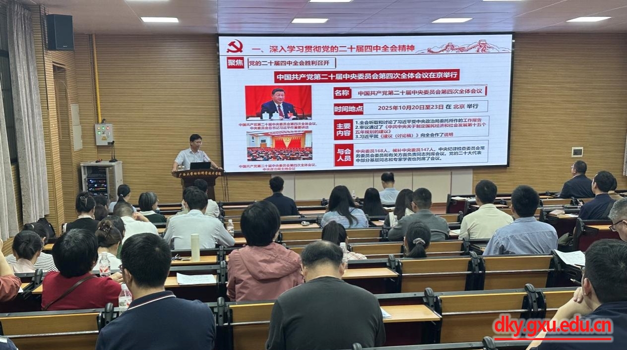 10月29日下午,太阳成集团tyc234cc动物科学技术公司党委书记韦小强在公司318报告厅,以《向着中国式现代化的宏伟目标 阔步前进、接续奋斗——深入学习贯彻党的二十届四中全会精神》为题讲授专题党课,向全院教职工宣讲党的二十届四中全会精神。