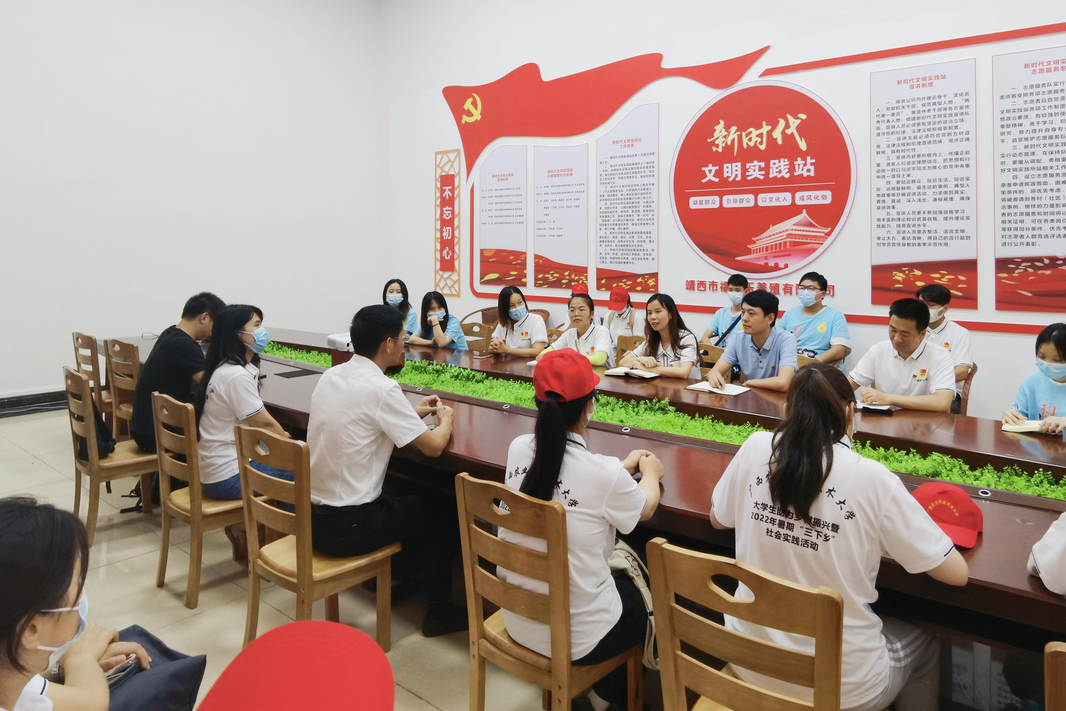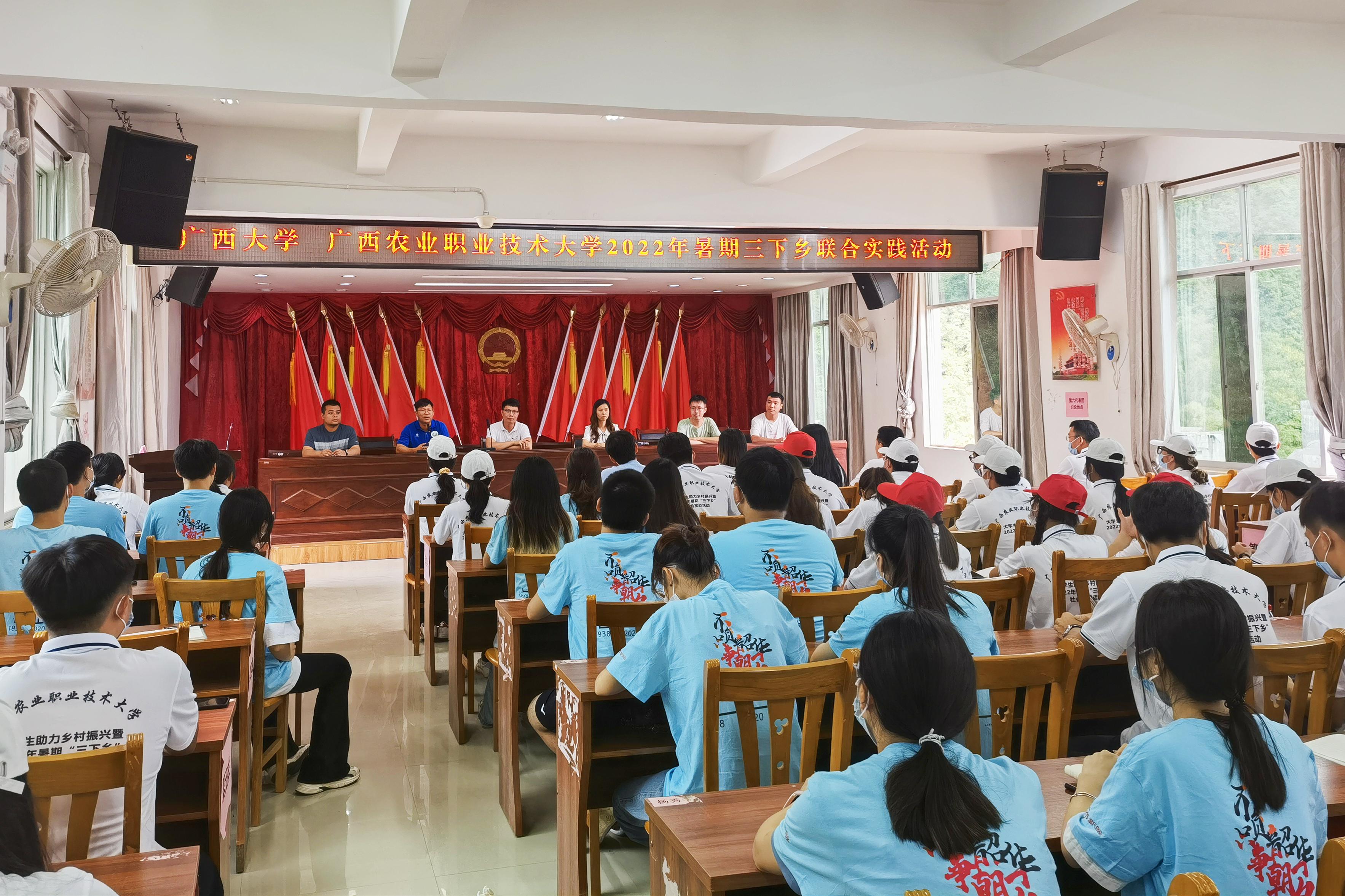 之后,研学团师生与靖西市禄峒镇思侯村、大史村、必隆村及小瑞村的驻村第一书记在禄峒镇人民政府会议室举行了座谈会。4名驻村第一书记分别结合各自的工作经历,逐一介绍了所在村屯的特色农业发展项目现状和促进乡村振兴具体措施,并分享交流了他们在农村基层的工作思路和心得体会。