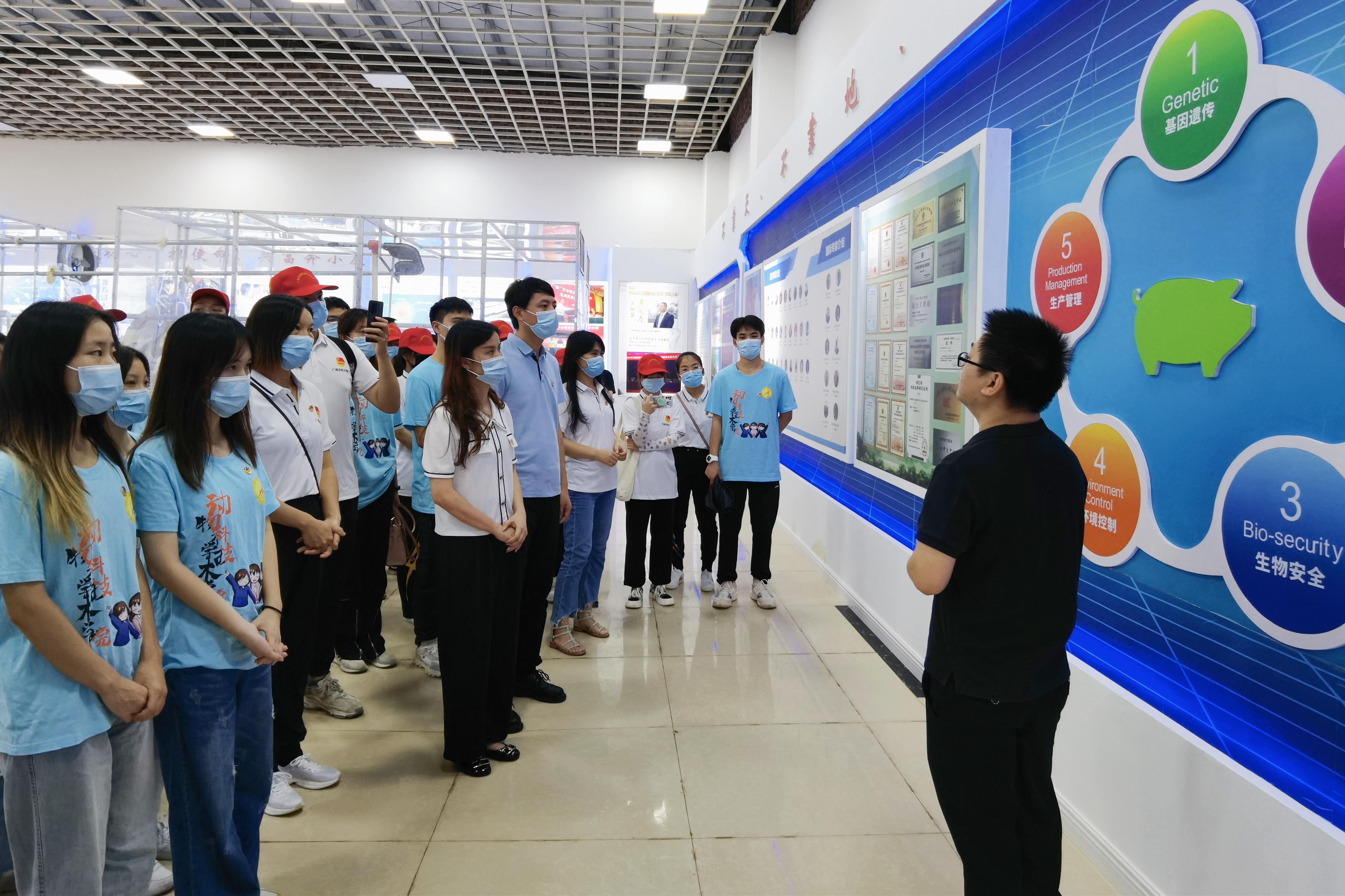 8日下午,研学团师生实地参观了靖西市福喜乐生态扶贫母猪产业核心示范区,并详细了解了福喜乐集团打造的“政府主导+农户主体+金融支撑+企业引领+合作社纽带+供应链平台”六位一体生猪产业化联合体的运营模式。