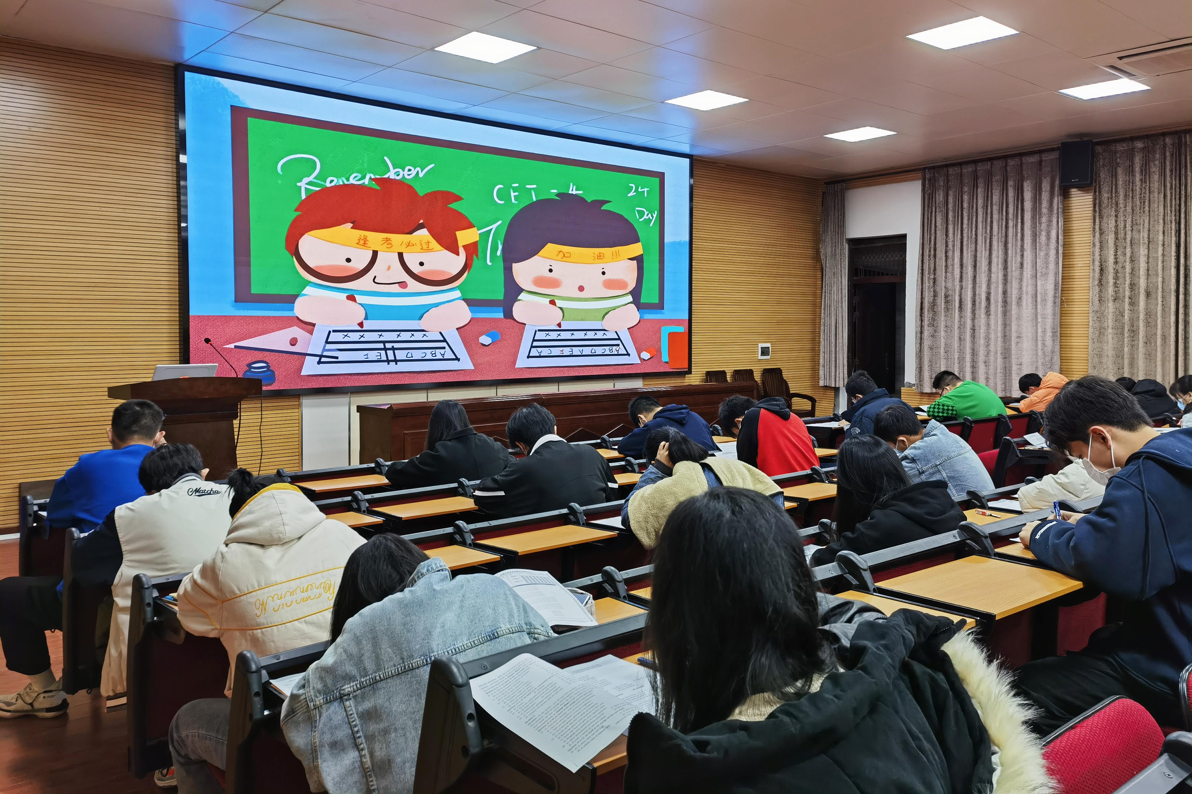 为了提高同学们的应试能力,帮助大家适应即将到来的大学英语四级考试,12月4日晚上,太阳成集团tyc234cc在318报告厅举行大学英语四级模拟考试,38名本科生、研究生自愿报名参加了此次模拟考试。