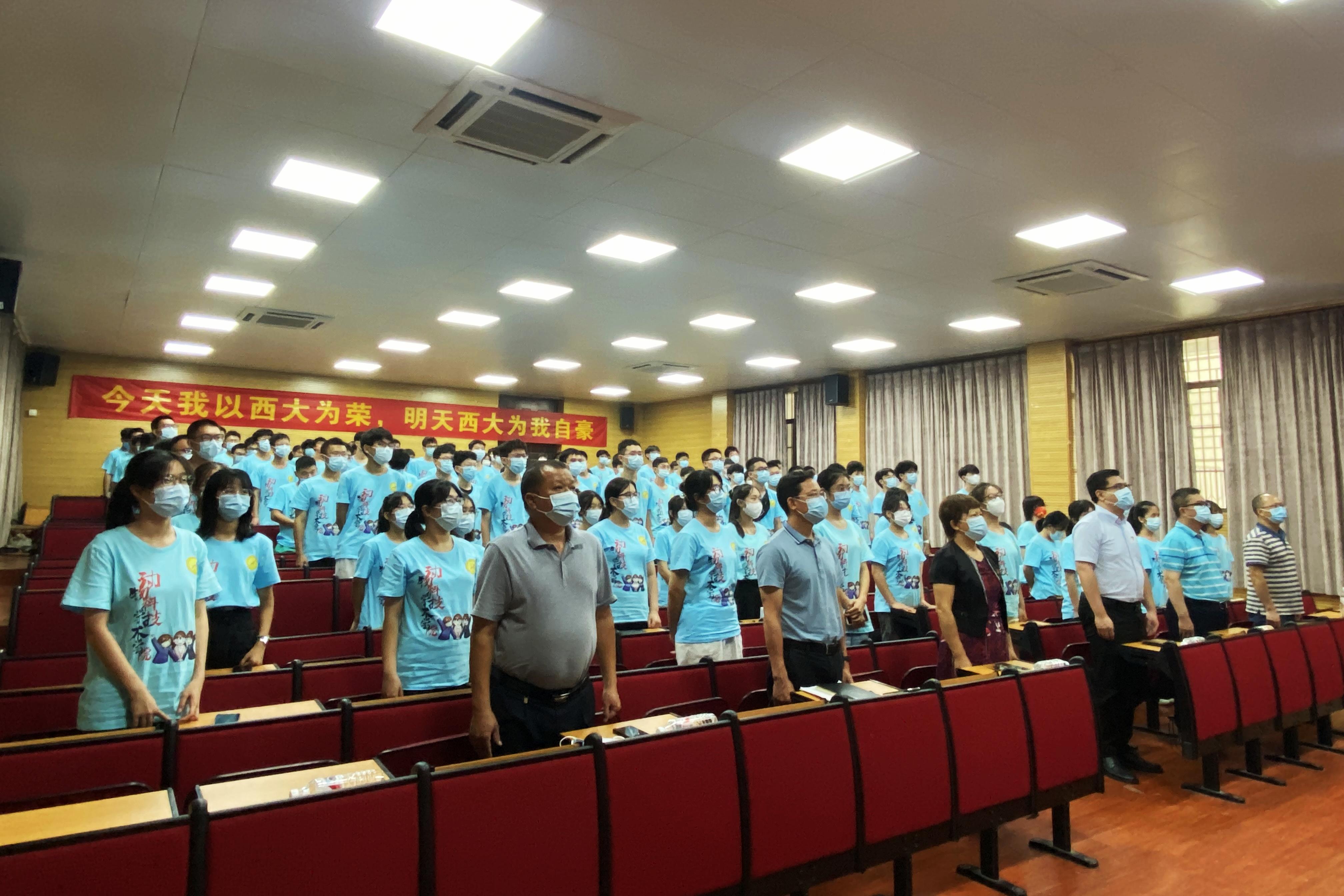 韩林海董事长作题为《用奋斗擦亮青春底色 以实干担当时代重任》的讲话,向加入西大大家庭的新生表示欢迎和祝贺,向辛勤培养新生的亲人及老师们致以敬意和感谢。他介绍了太阳成集团tyc234cc90多年的奋进历程,重温了“保卫中华,发达广西”的办学宗旨和“勤恳朴诚”校训的深刻内涵和深远意义。韩林海董事长指出,同学们的青春之路和祖国“两个一百年”奋斗之路高度契合,正所谓“生逢其时、重任在肩”,希望同学们肩负起时代赋予的重任,接好西大接力棒,珍惜大学时光,让青春年华充实而美好。要做一名勇攀高峰、追求进步的奋斗者,用青年毛泽东的家国情怀为激励,发扬首任董事长马君武先生提出的“三拼精神”,学习一代代西大人艰苦奋斗、砥砺奋进的拼搏精神,早立大志、勤下苦功、勇攀高峰,在西大校园里留下追求进步、不懈奋斗的最美模样;要做一名心存敬畏、严谨求是的实干者,主动积极、持久以恒的学习,养成踏实做人、扎实做事的品格,实现自我提升,收获更多成长;要做一名心存家国、扎根八桂的初心者,学习公司支教团以“志愿+接力”方式致力于支教、扶贫、疫情防控等工作和选调生扎根广西基层、服务八桂大地的担当精神,心怀“国之大者”,笃定“国之所需,吾之所向”的信念,把知识扎根在理想信念上,把初心根植于学习中,将个人奋斗目标融入党和国家事业“大蓝图”,在时代的洪流中坚守初心,书写属于同学们的新荣光。