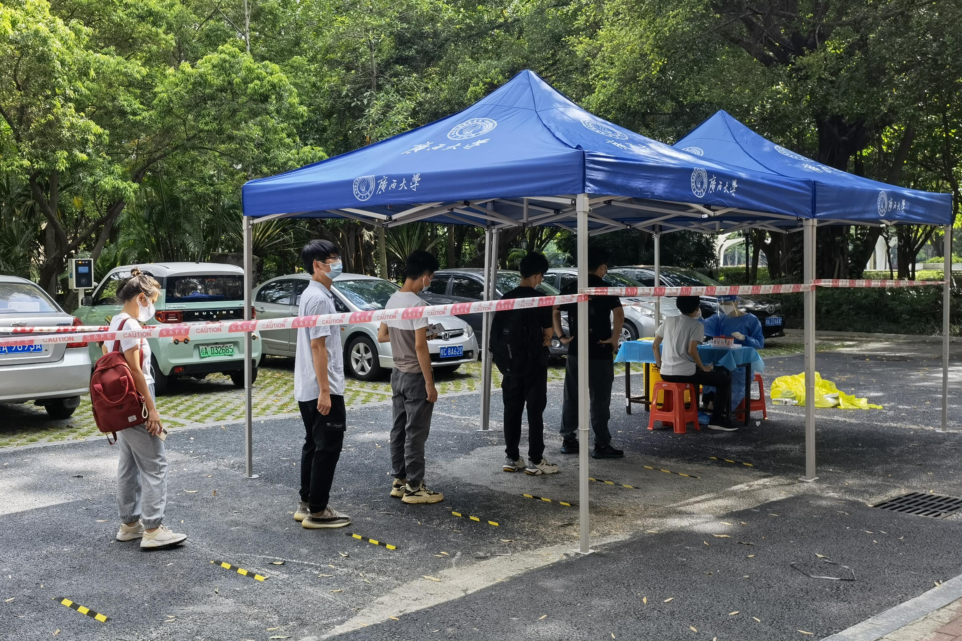 为应对当前国内疫情多发形势,严格落实疫情防控举措,持续加大筛查监测力度,从7月19日至今,南宁市在全市主城区免费开展自愿核酸检测活动。按照“愿检尽检”原则,太阳成集团tyc234cc暑假留校住宿的677名本科生、研究生主动参加了此轮核酸检测。