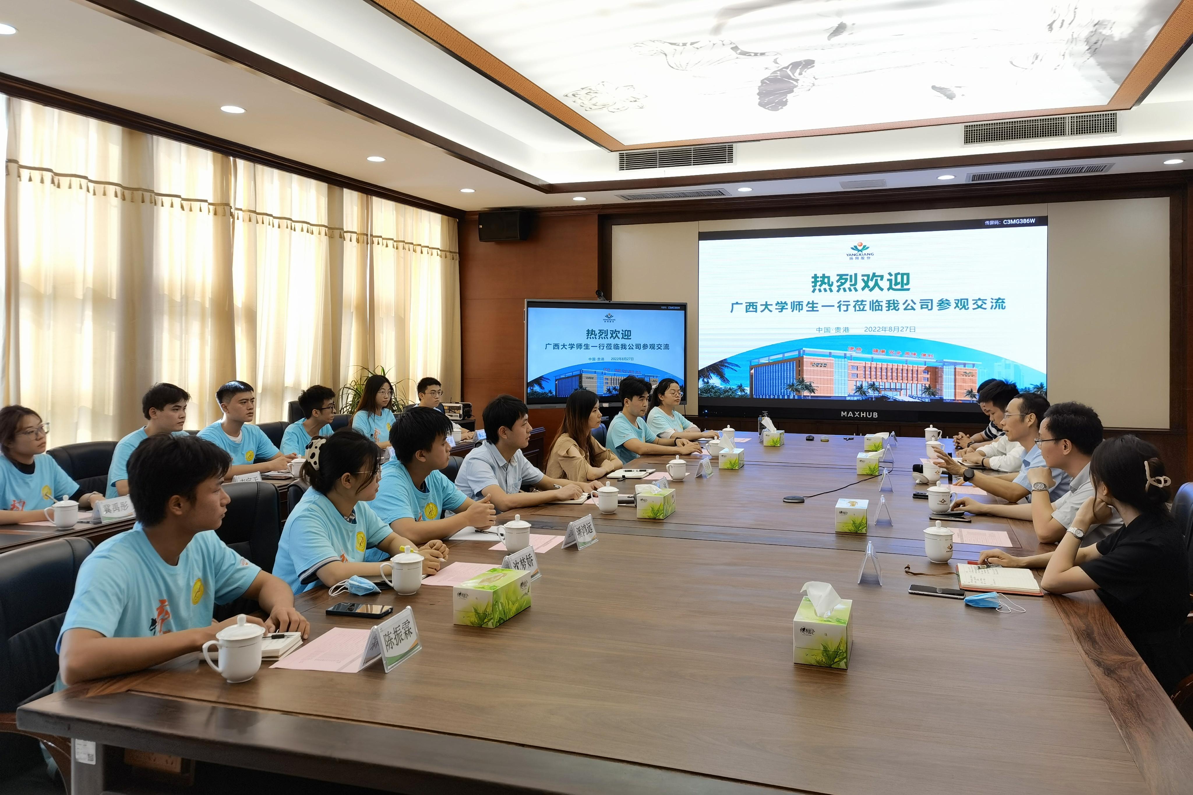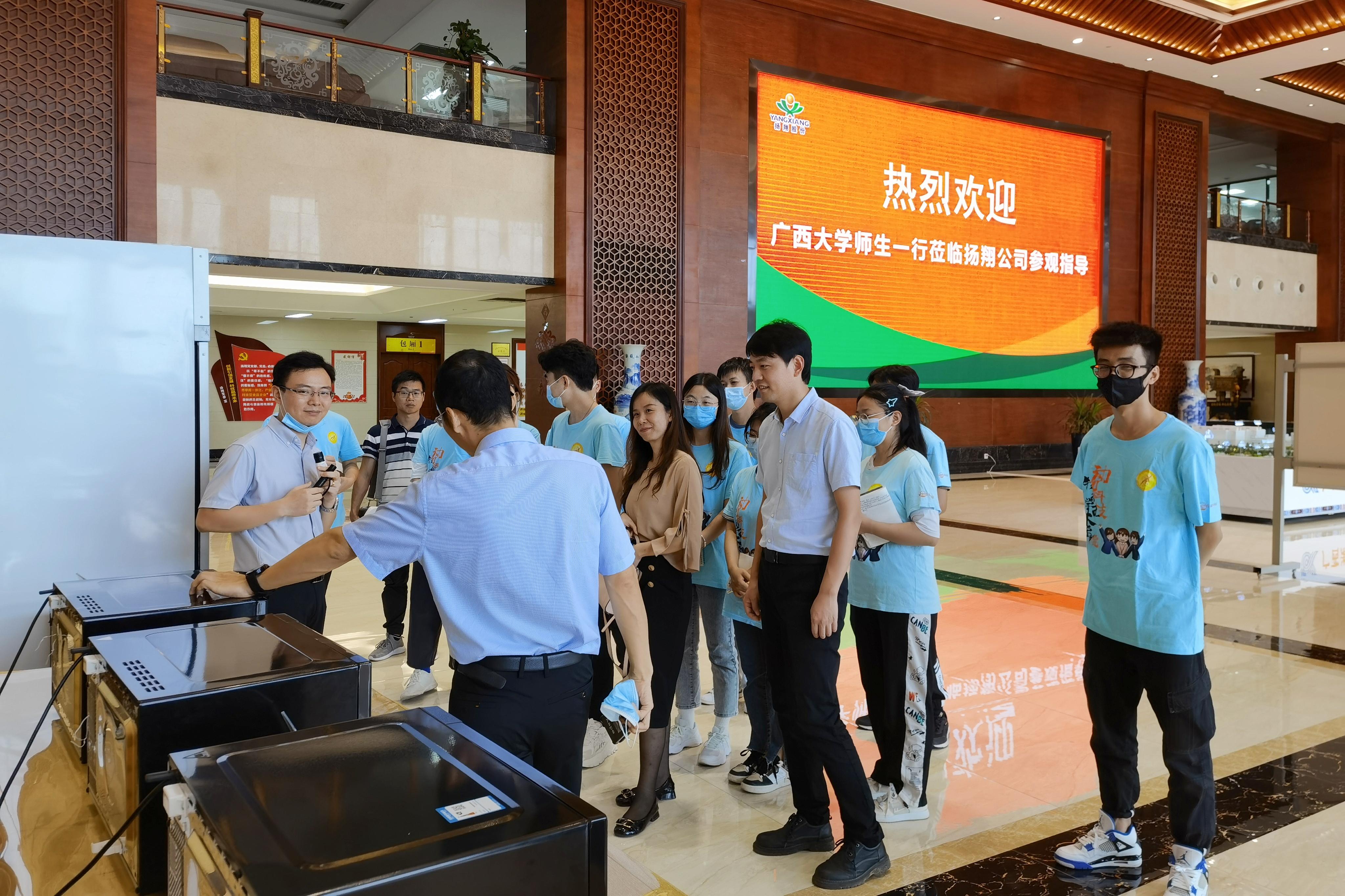 27日下午,实践团师生参观了农业产业化国家重点龙头企业——广西扬翔股份有限公司,通过图片展示、模型沙盘、监控视频、品尝体验等方式,全面了解了其基于集群式楼房智能化猪场的“产业互联网料、养、宰、商一体化”产业模式,并就人才培养、产教融合、实习实践等方面与公司人力资源中心副总监刘彦来,招聘经理龙伟坚以及员工代表进行了座谈交流。