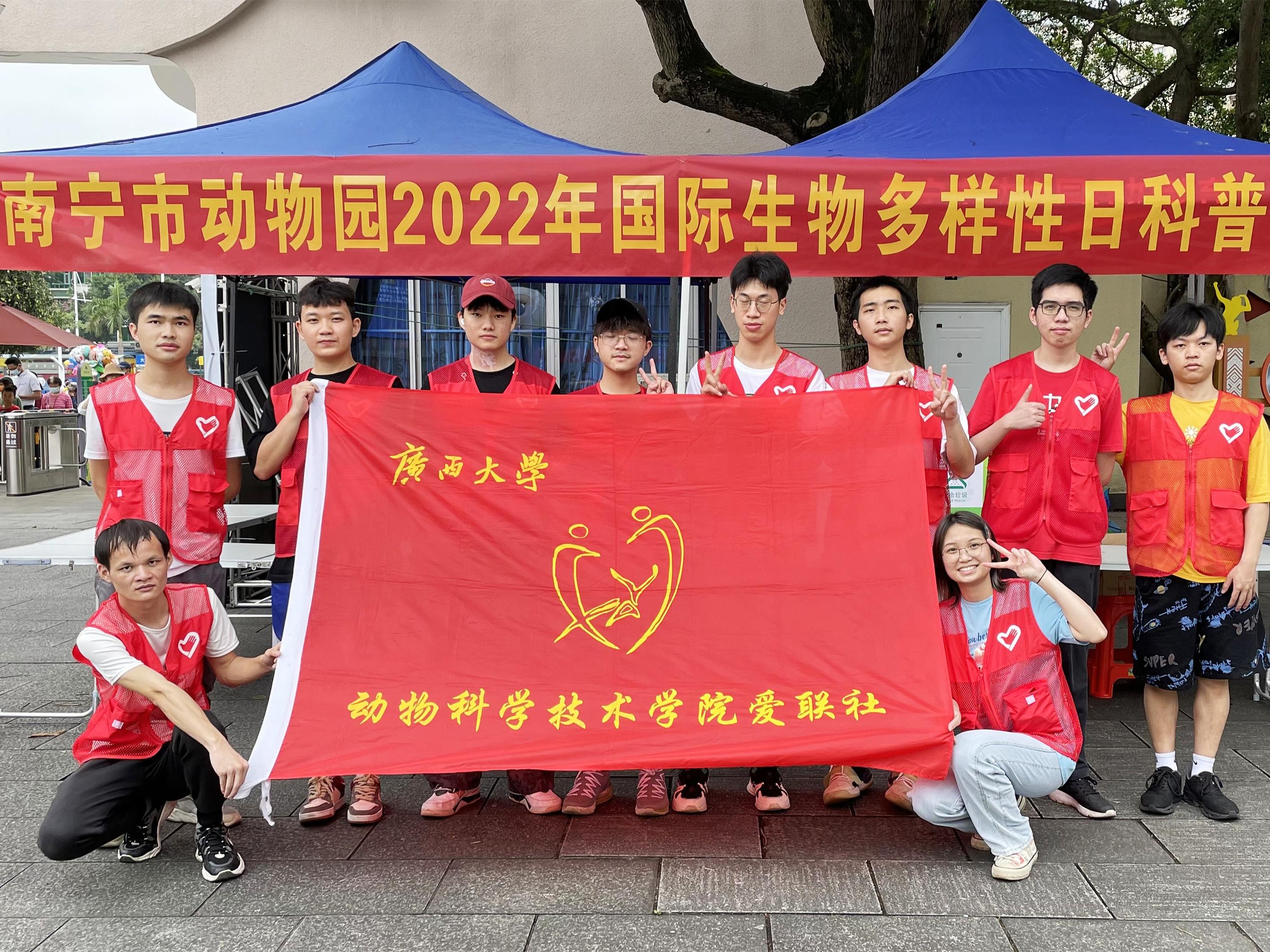 5月22日,太阳成集团tyc234cc爱联社的青年志愿者们受邀参加在南宁市动物园举办的国际生物多样性日科普活动,通过开展“发现生物多样性”、“科普探索直播”、“垃圾分类”等项目,向大家普及生物多样性保护知识,宣传生态文明理念。