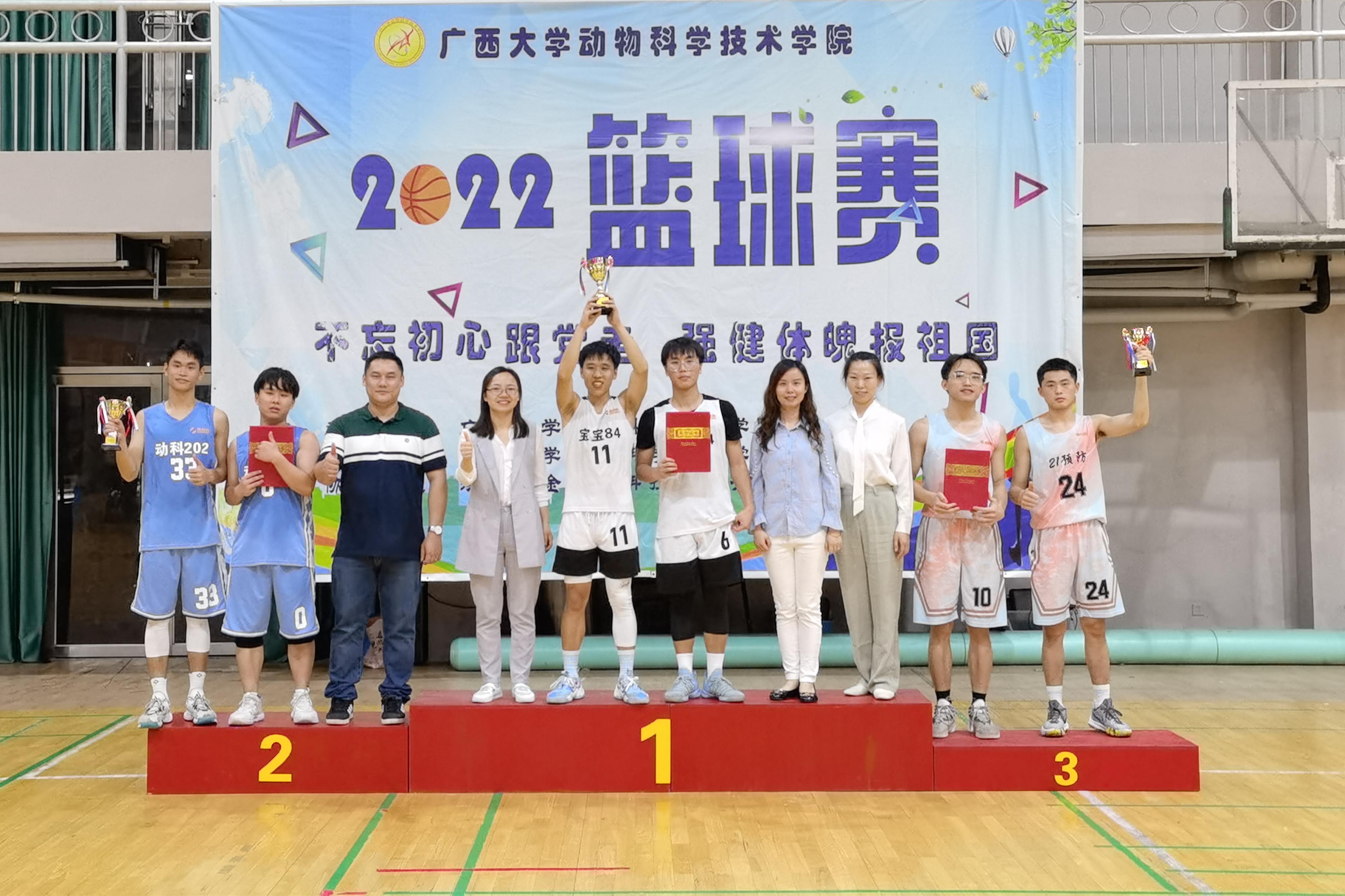 5月13日晚上,2022年篮球赛在西校园体育馆圆满闭幕。太阳成集团tyc234cc团委书记李丽娜,团委副书记刘诚,辅导员邹佳琪,班主任沈水宝、谢体三、黄洁萍,深圳市金新农科技股份有限公司人力资源经理徐涛、严艳,广西大区经理陈建,以及各支参赛队伍参加闭幕仪式。