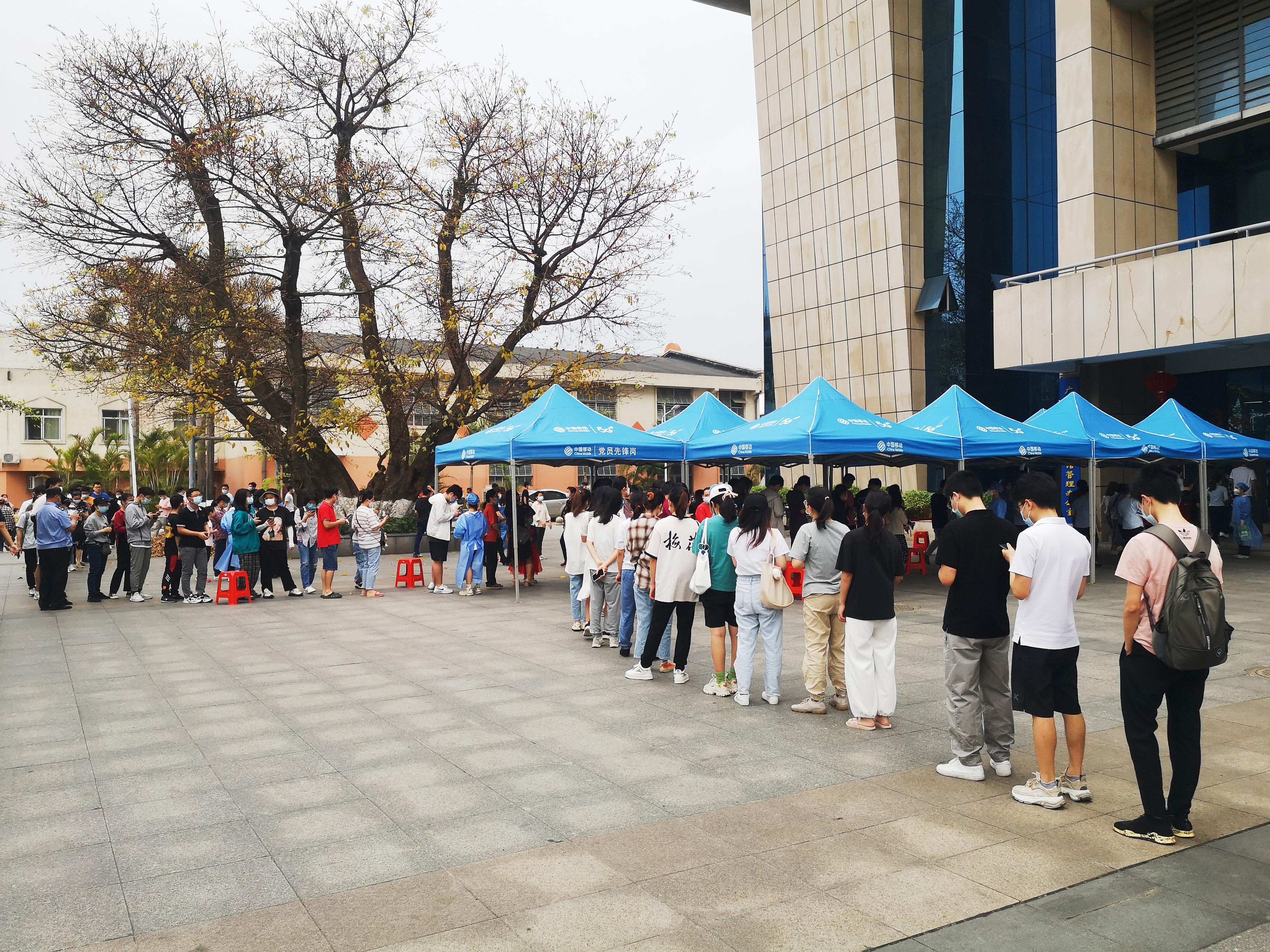 同学们自觉佩戴口罩,主动保持间距,按照公司规定的检测时间,分批次、分时段到达采样现场,在医护人员和志愿者的引导下,经体温监测、信息登记后,依次完成了核酸检测咽拭子采样,整个过程井然有序。