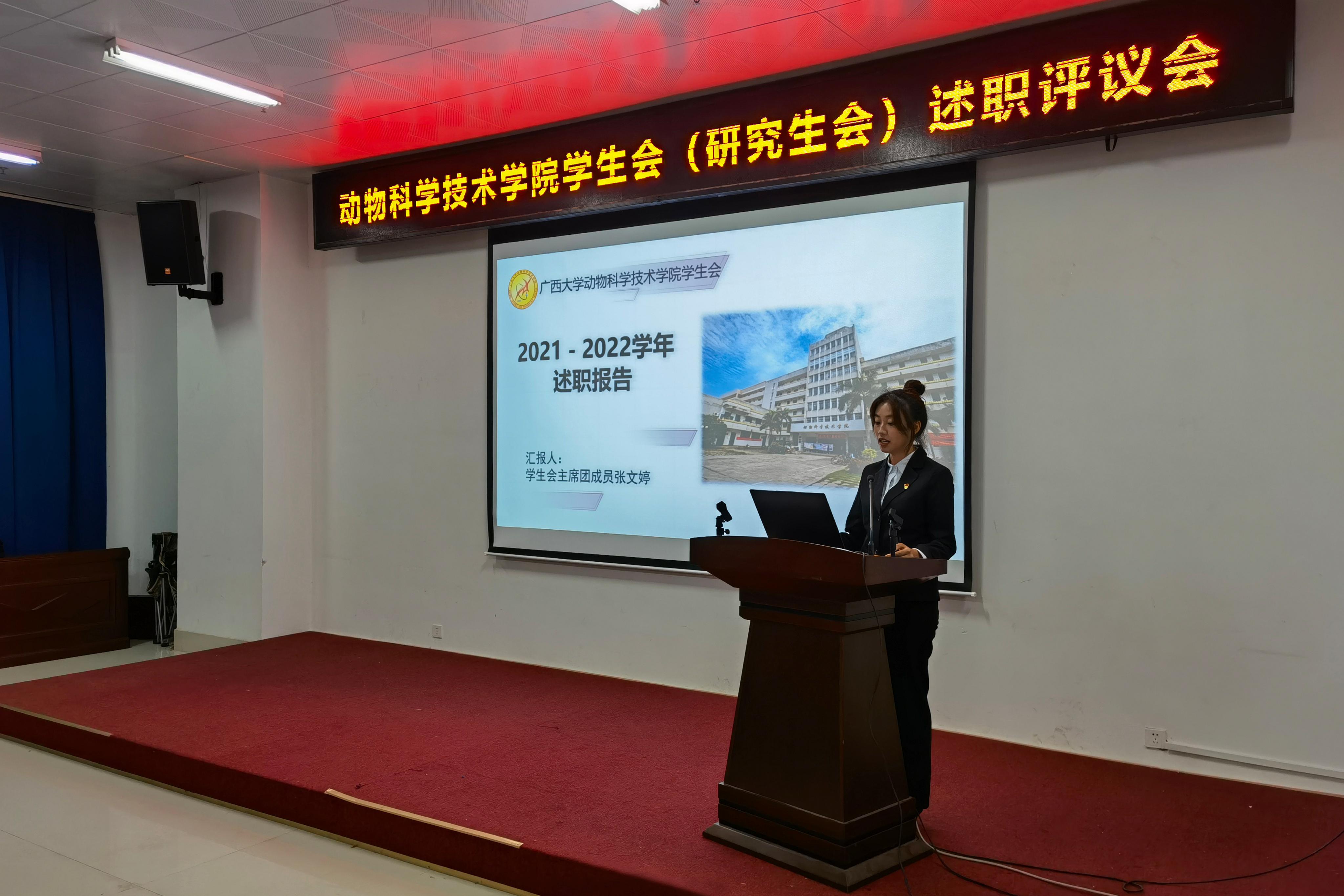 员工会、研究生会主席团成员各自从思想政治、专业学习、工作成效、纪律作风和个人成长等方面依次进行述职。