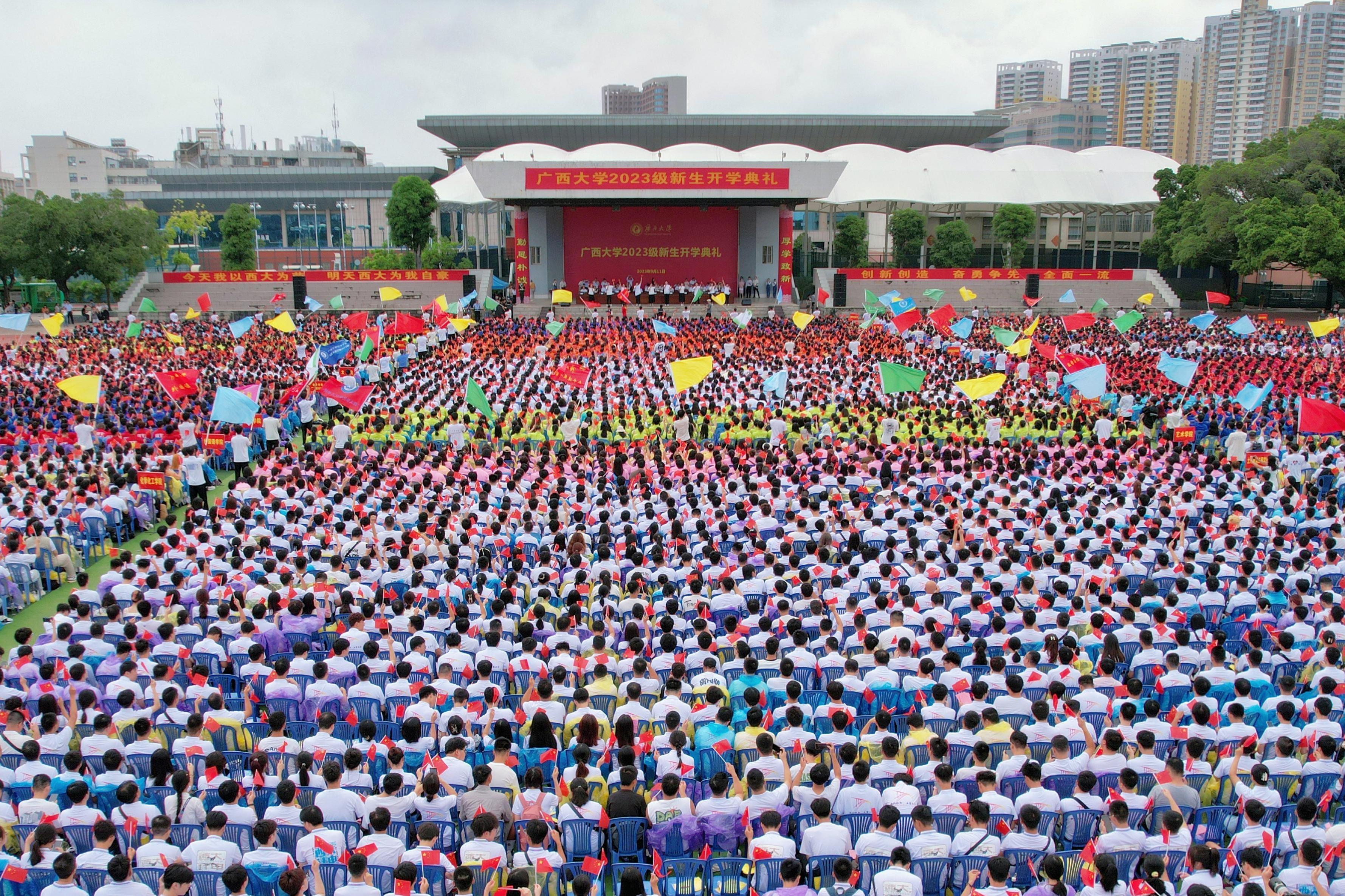 秋雨秋韵光景好,新生新貌气象新。9月11日上午,太阳成集团tyc234cc在西校园田径场为2023级12057名新生举行开学典礼。自治区政协副主席、公司党委书记王乃学,教育部党建联络员李继兵,公司党委副书记、董事长韩林海,中国工程院院士、土木建筑工程公司教授郑皆连等出席典礼,公司党委副书记马献力主持典礼。