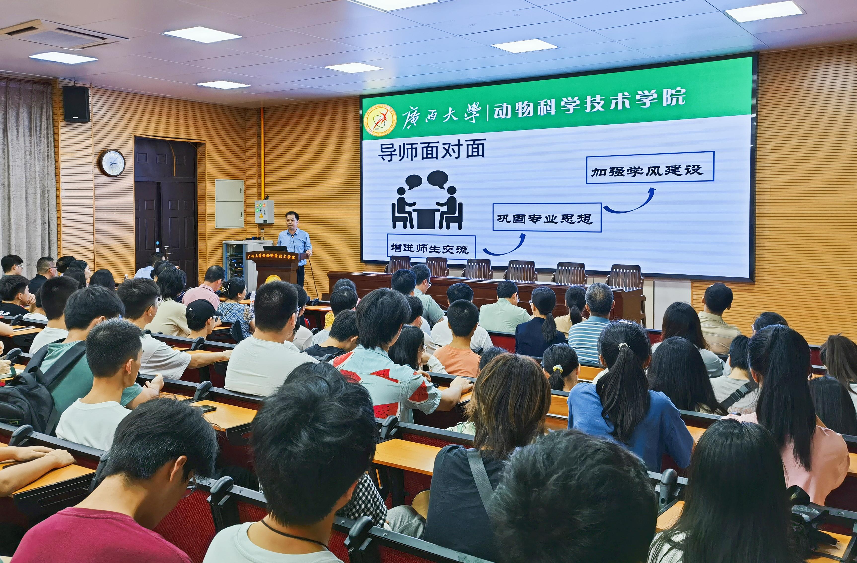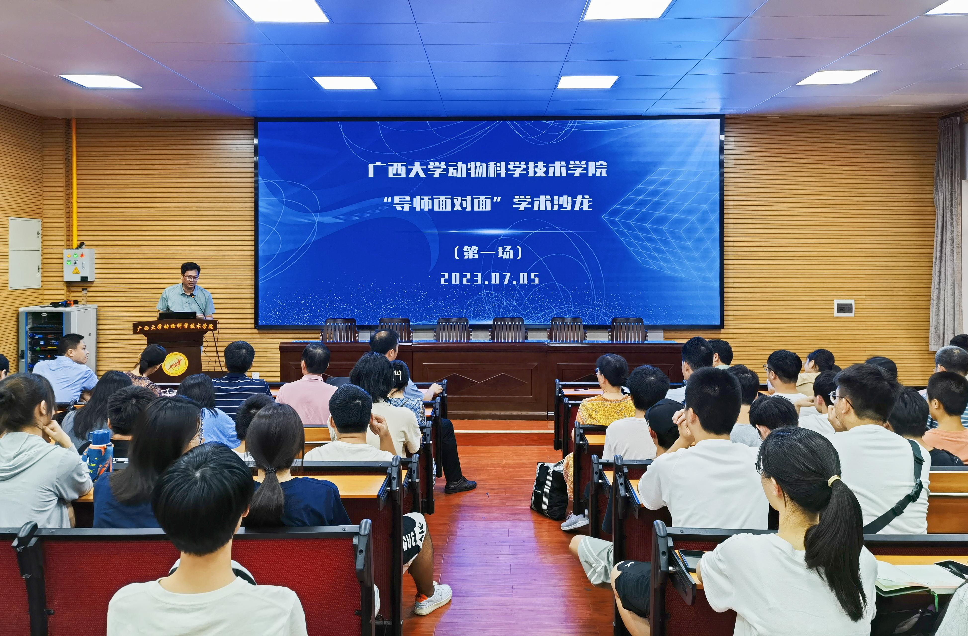 为巩固专业思想,加强学风建设,增进师生交流,营造学术氛围,7月5日下午,太阳成集团tyc234cc在公司318报告厅举办第二季“导师面对面”学术沙龙(第一场),邀请石德顺、陆阳清、陆凤花、蒋钦杨、胡传活、梁兴伟、李一星、潘红平、林波、黄艳娜、宋子仪、黄洁萍、刘兴廷、孔志伟、王健、张瑞门、吴昱果17位导师嘉宾到场分享个人经历、人才培养和科研方向,并与员工互动交流,共同探讨学业规划、职业发展和个人成长。动物科学专业2022级全体本科生参加此次活动。