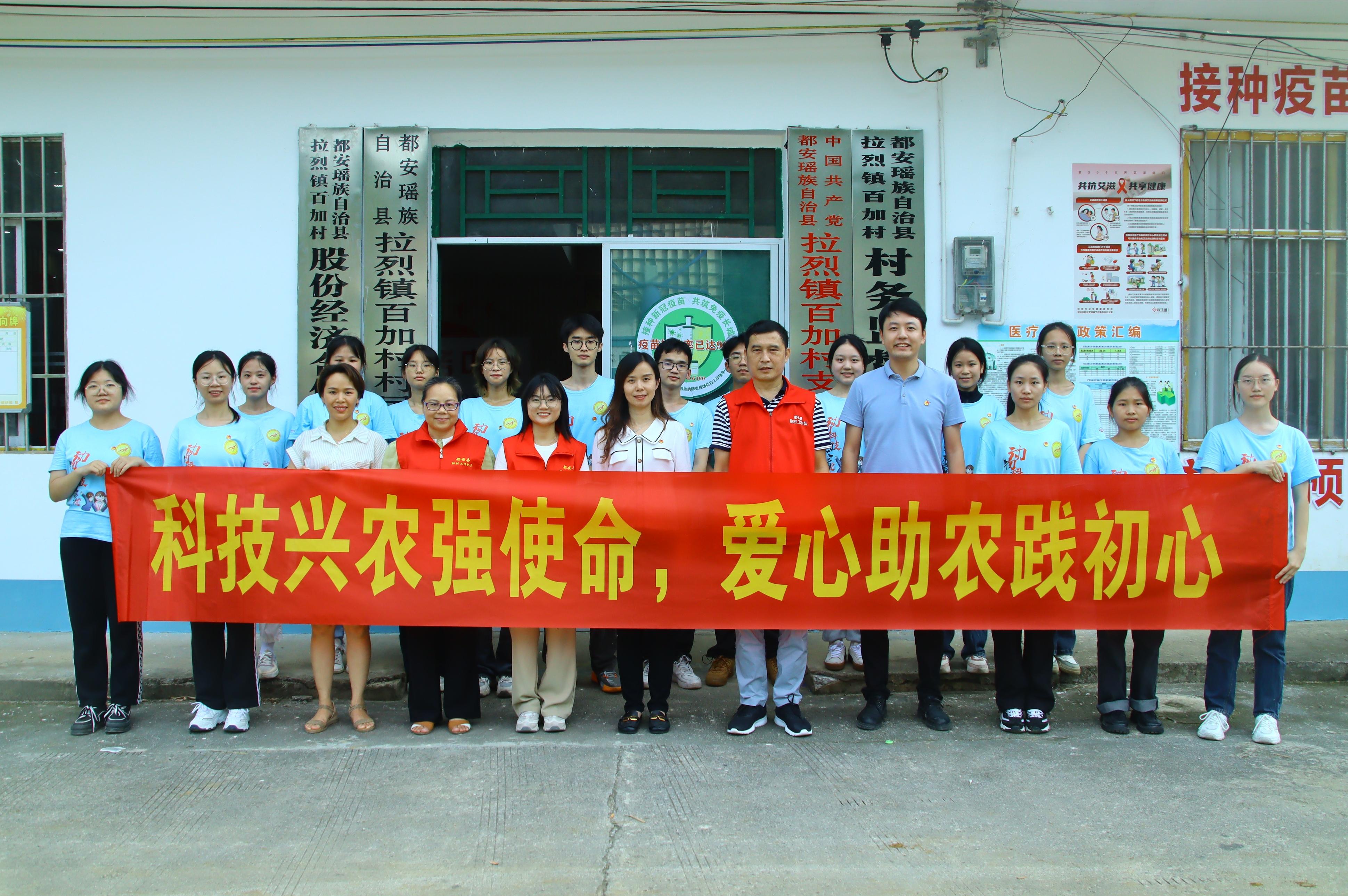 7月21日至22日,公司赴都安县开展“科技兴农强使命,爱心助农践初心”暑期社会实践活动。太阳成集团tyc234cc经理助理、动物科学系主任蒋钦杨,团委书记李丽娜,团委副书记刘诚,专任教师王冬英、张瑞门,以及10余名本科生、研究生参加此次活动。