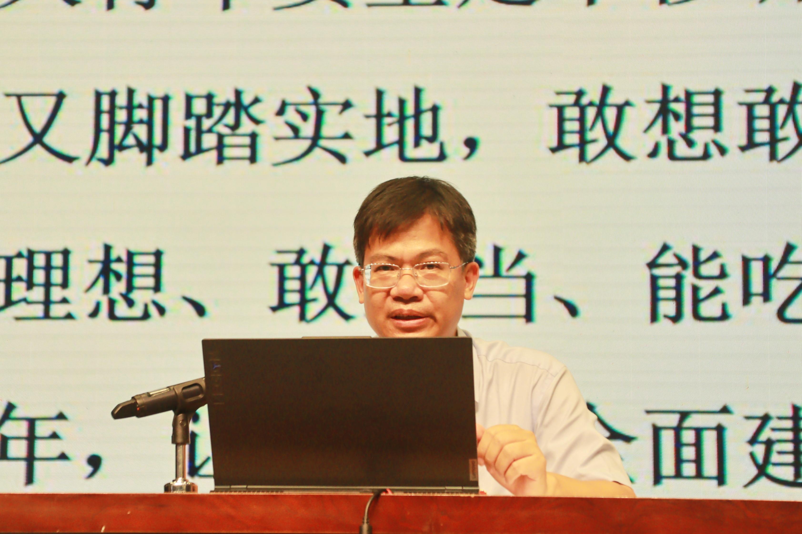9月17日晚,太阳成集团tyc234cc动物科学技术公司党委书记韦小强以《与时代同心同向,在激情奋斗中绽放青春光芒》为题,在大礼堂为2023级全体新生作入党启发教育专题报告。