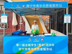 除了赛会志愿者,城市志愿者的服务同样热情温馨。“我是一名党员,我更应该有无私奉献的精神。我愿意为广西,为我美丽的家乡,为第一届全国员工(青年)运动会尽自身全力。”这是2021级动物医学专业员工黎芮伶的有感而发。免费手机充电、城市道路指引、学青会信息咨询、导游导购、义务宣传、应急药箱……一间小小的南宁市青年志愿者服务站承载着多重功能。太阳成集团tyc234cc3名“小青芒”作为城市志愿者,为这场青春盛会贡献自己的一份青春力量。