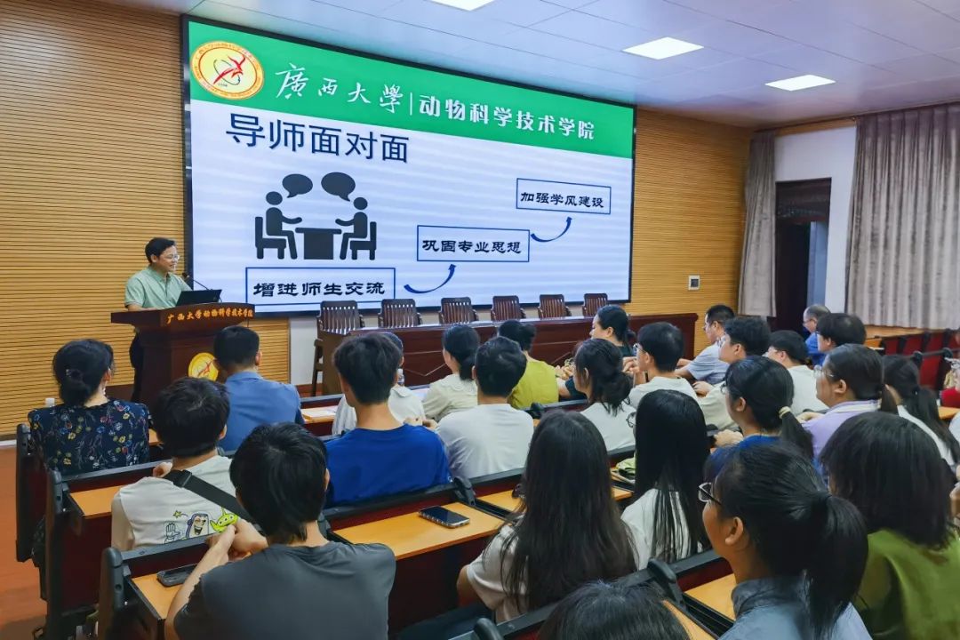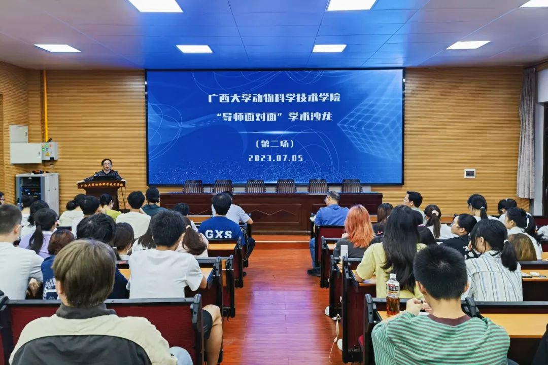 为巩固专业思想,加强学风建设,增进师生交流,营造学术氛围,7月5日晚上,太阳成集团tyc234cc在公司318报告厅举办第二季“导师面对面”学术沙龙(第二场),邀请何家康、韦祖樟、陈樱、王晓晔、于美玲、方芳、韦懿仙7位导师嘉宾到场分享个人经历、人才培养和科研方向,并与员工互动交流,共同探讨学业规划、职业发展和个人成长。动物医学专业2022级全体本科生参加此次活动。
