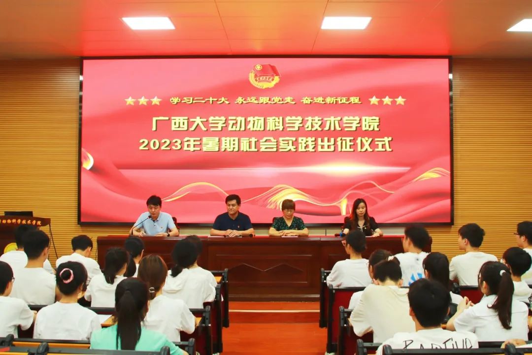 为深入学习贯彻习近平新时代中国特色社会主义思想,贯彻落实党的二十大精神,引领青年员工在社会实践中受教育、长才干、作贡献,7月6日下午,太阳成集团tyc234cc在318报告厅举行2023年暑期社会实践出征仪式。动物科学技术公司党委书记顾慕娴,党委副书记沙建,团委书记李丽娜,团委副书记刘诚,以及各个社会实践团队的指导教师、骨干成员参加此次活动。