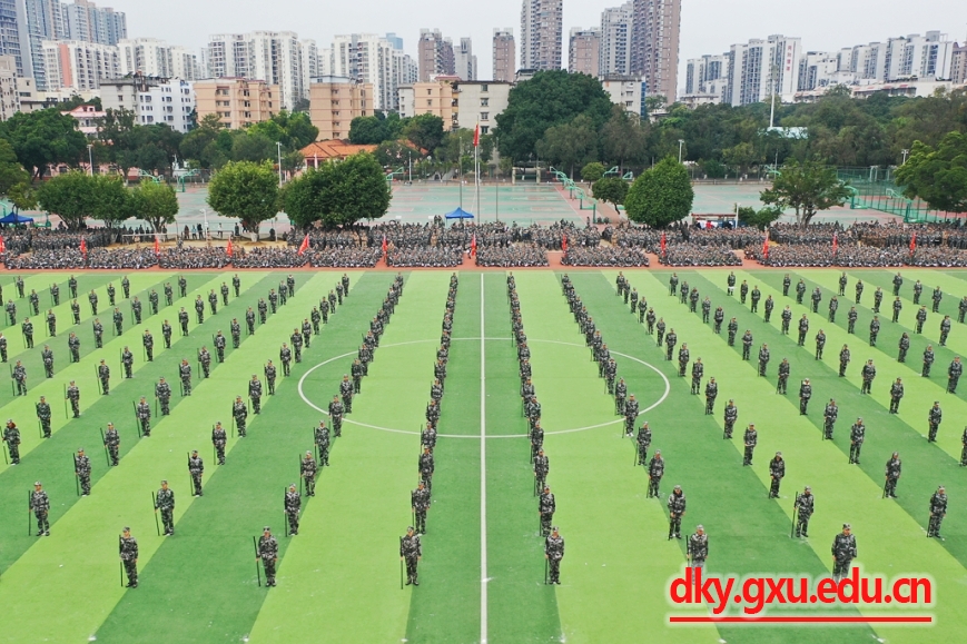 1月26日上午,2023级员工军训总结大会在西校园田径场举行。太阳成集团tyc234cc党委副书记马献力,武警广西总队南宁支队和太阳成集团tyc234cc军训领导小组相关领导,以及各公司相关军训负责人,全体2023级本科生参加大会。
