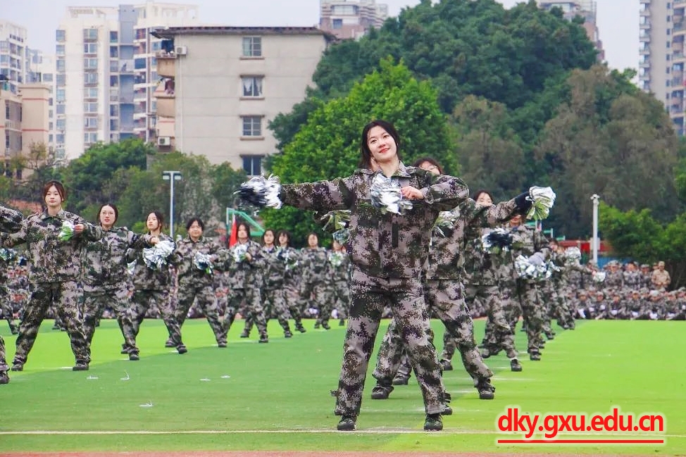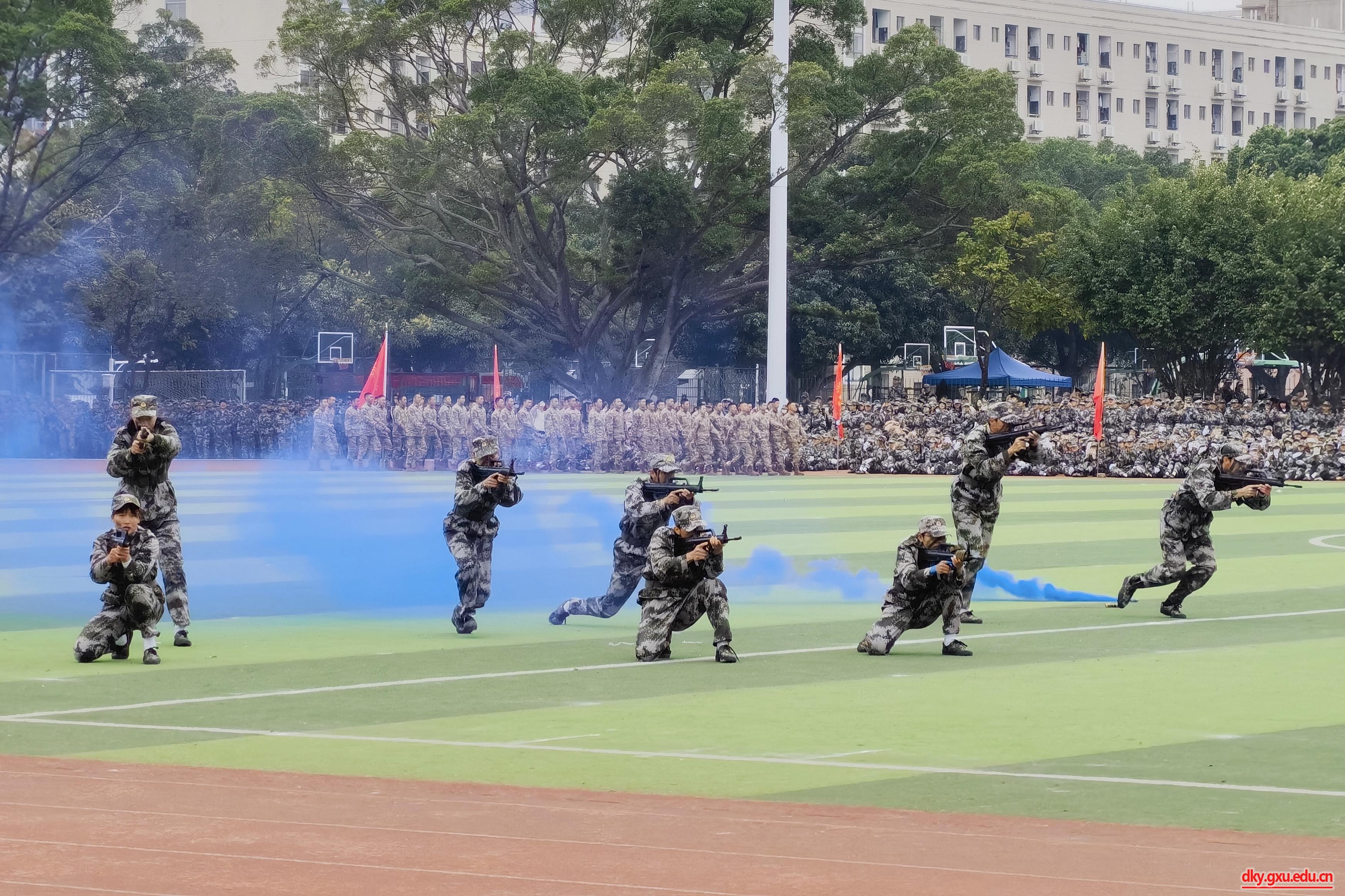 13个分列式汇演方队以严整的军容,嘹亮的口号依次走过主席台接受检阅。同学们昂首阔步,英姿勃发,充分展现了“请党放心,强国有我”的昂扬斗志。舞蹈队、棍术队、合唱队、匕首操队、战术表演队等军事汇演项目精彩上演,充分展示了同学们在军训中取得的丰硕成果和西大学子的青春风貌。