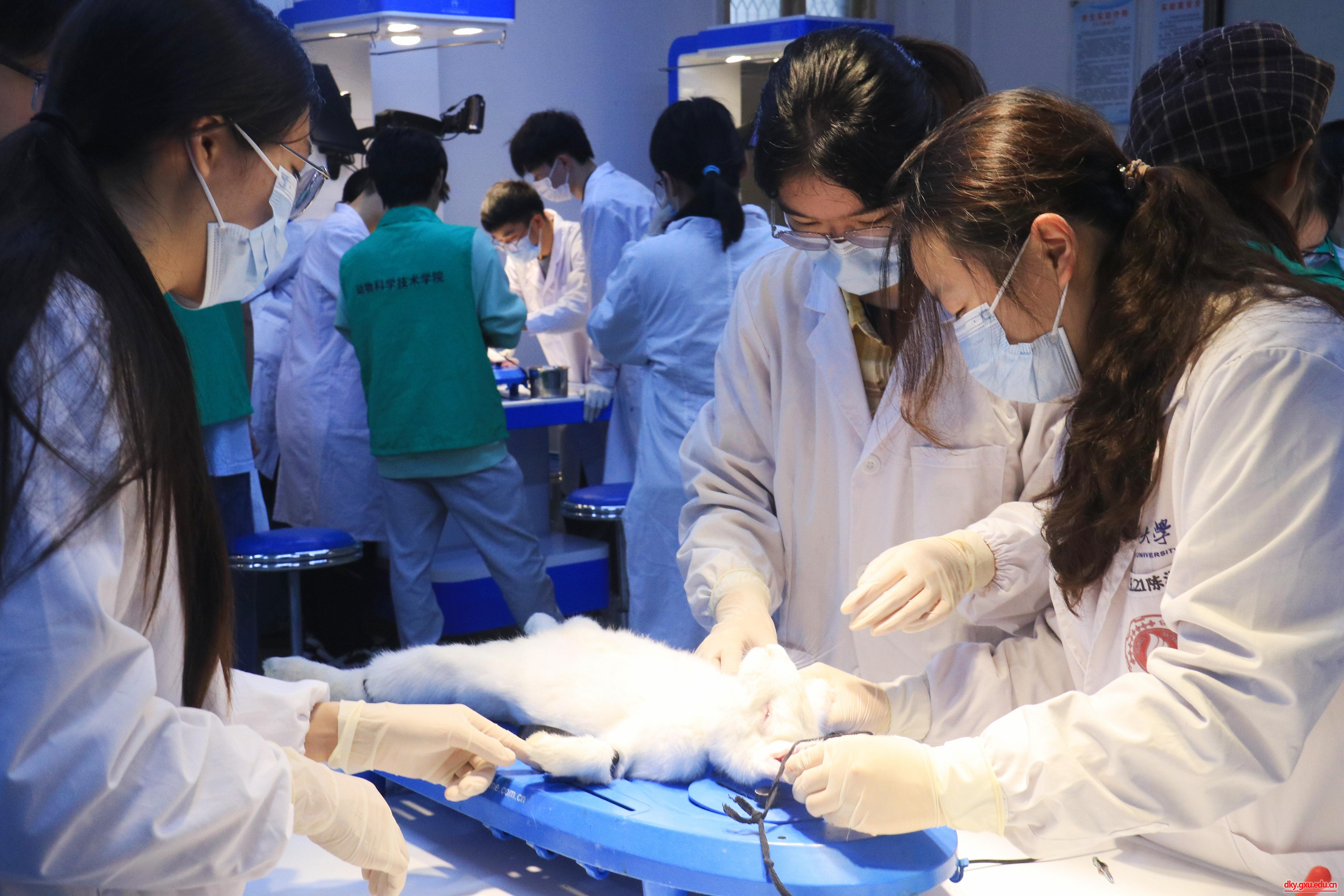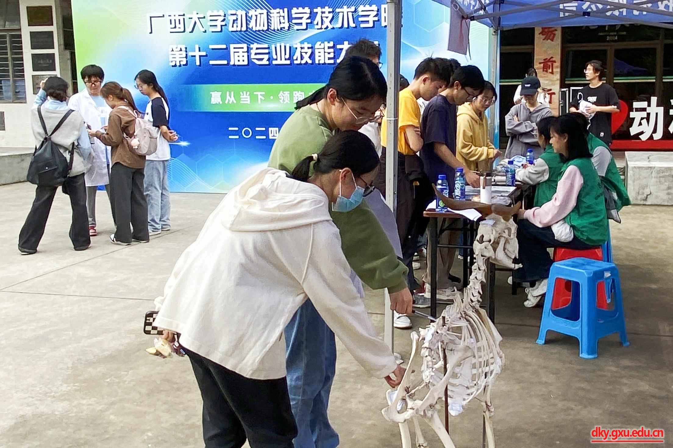 本次比赛共设置有兔的麻醉与插管、鸡的采血与解剖、猪的体型外貌评分与活体背膘厚测定、血涂片制备、外科手术缝合、生态畜牧场规划设计等室内项目,动物解剖绘图、家畜骨骼与肌肉标本的识别、饲料原料的快速鉴定与掺假识别、徒手打结与器械识别等室外项目。