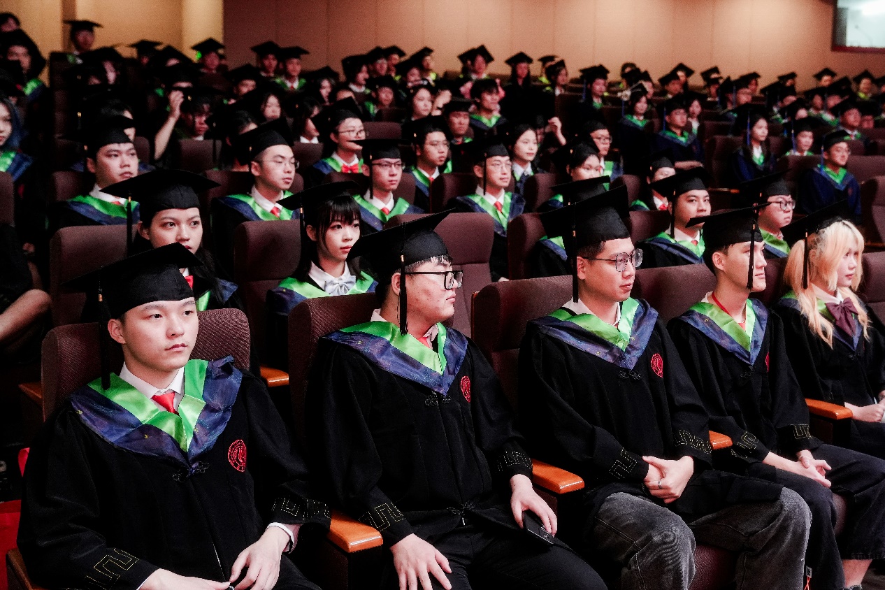 在雄壮的国歌声中,2024届毕业典礼暨学位授予仪式拉开帷幕。全体师生共同收看汇学堂主会场毕业典礼部分的视频直播。韩林海董事长代表全校师生员工向顺利完成学业的毕业生表示祝贺,向倾心培养员工的师长们、辛勤培育员工的父母们、一路陪伴员工的亲人朋友表示感谢,并希望同学们保持“清醒”认知,锚定“清晰”目标,思考“清楚”现状,继续传承弘扬“勤恳朴诚”的校训精神,努力在强国建设、民族复兴的伟大实践中书写别样精彩的人生。