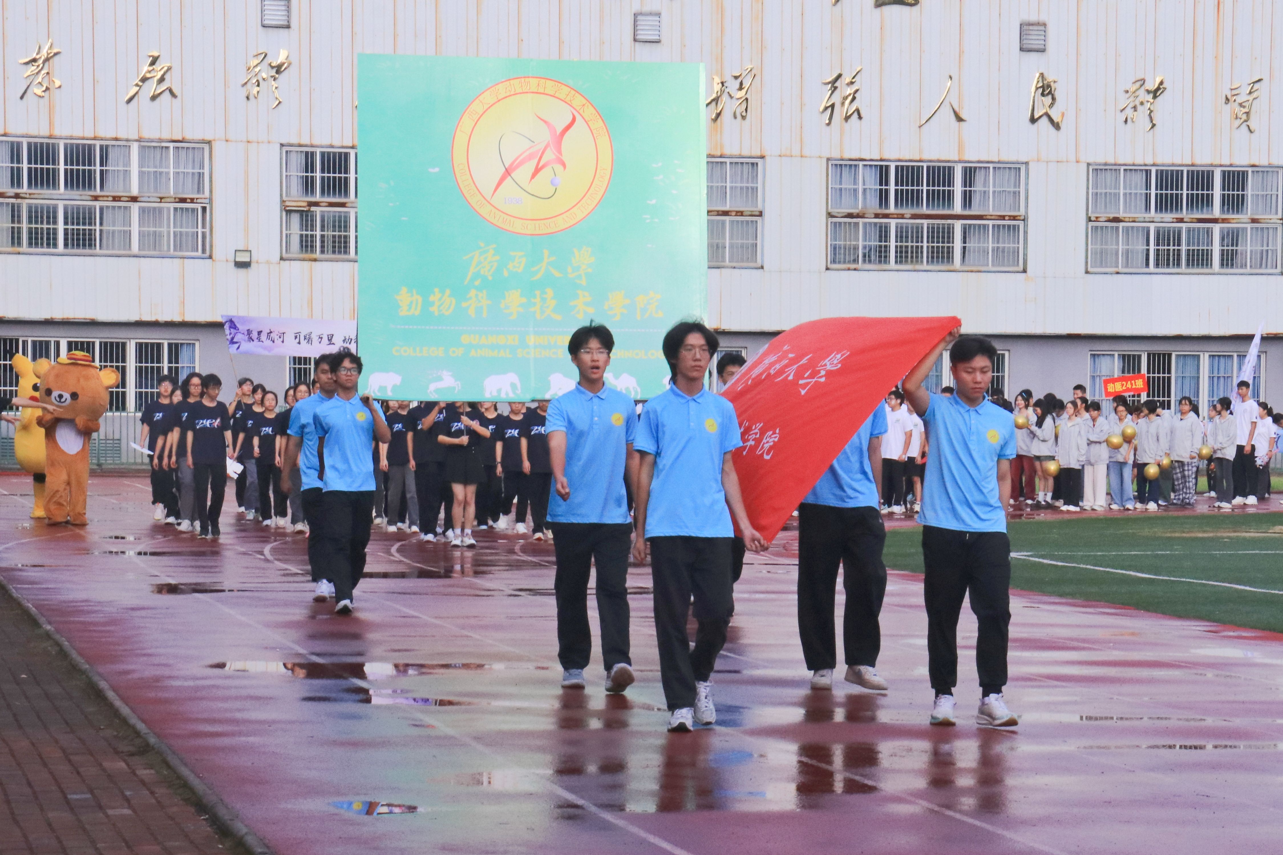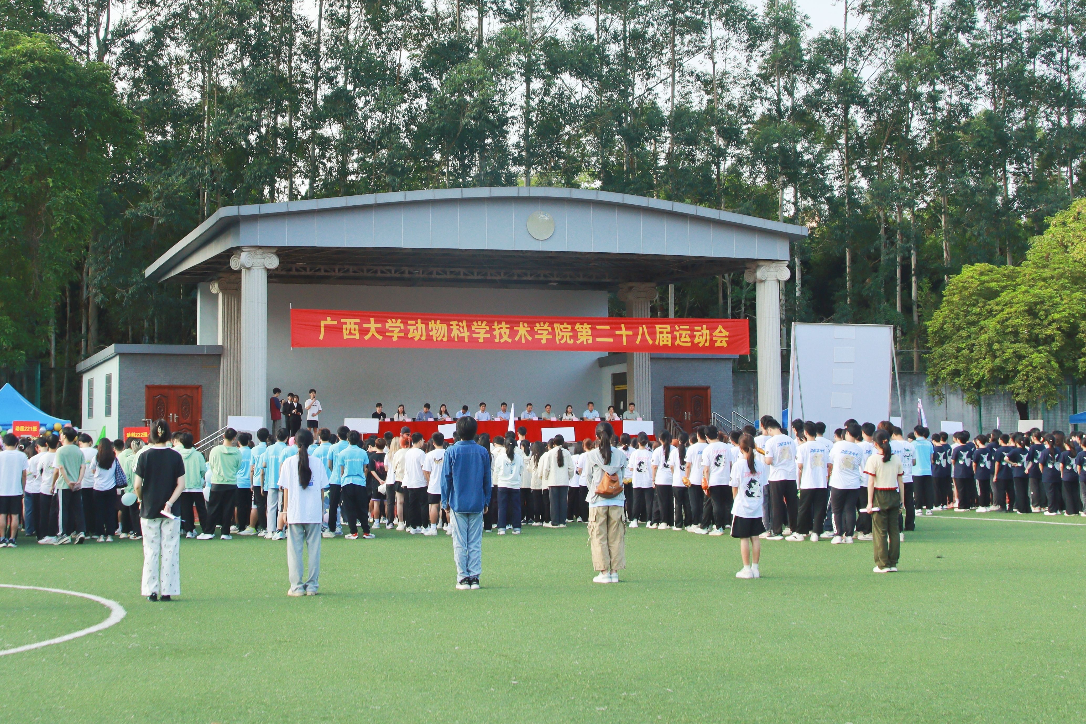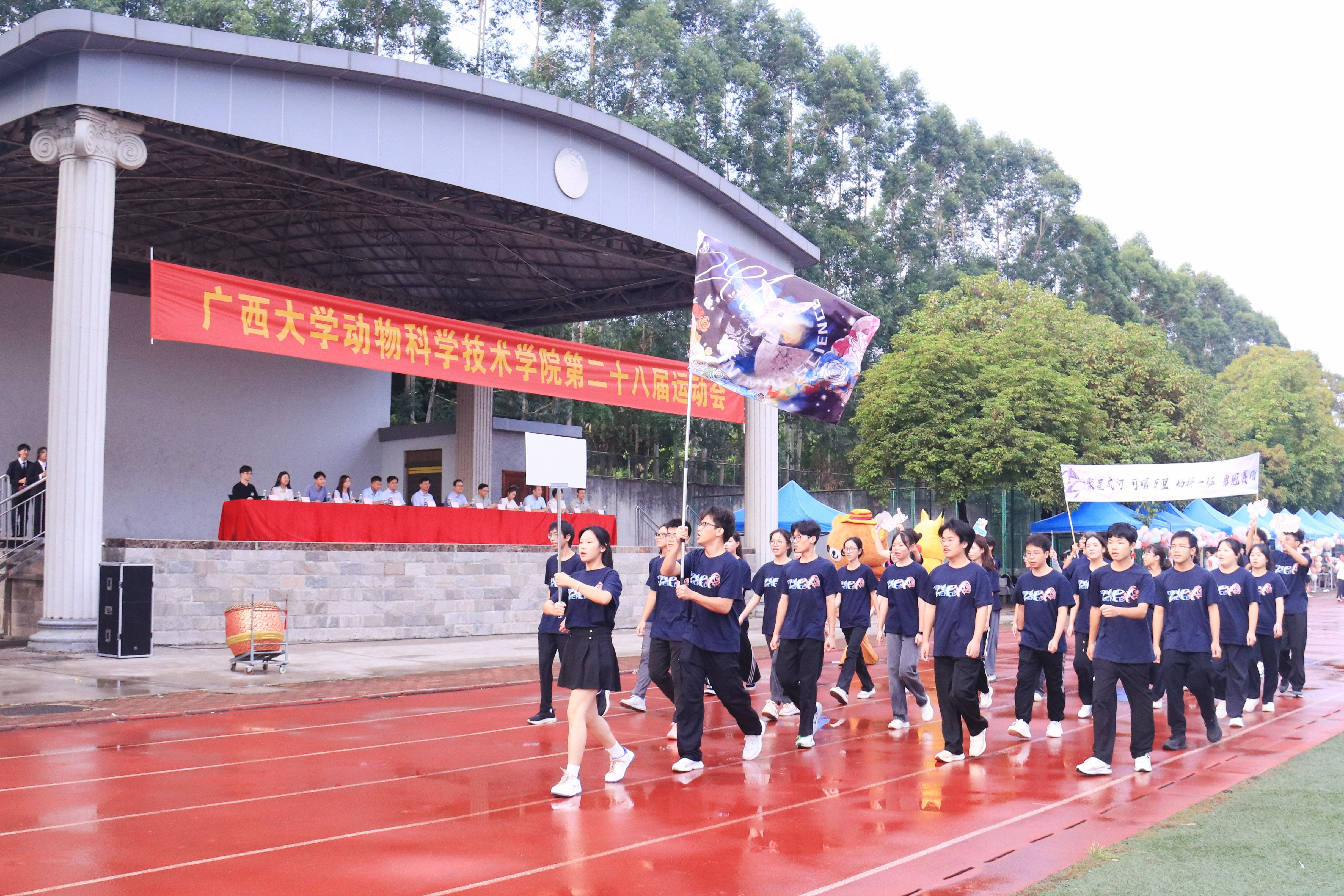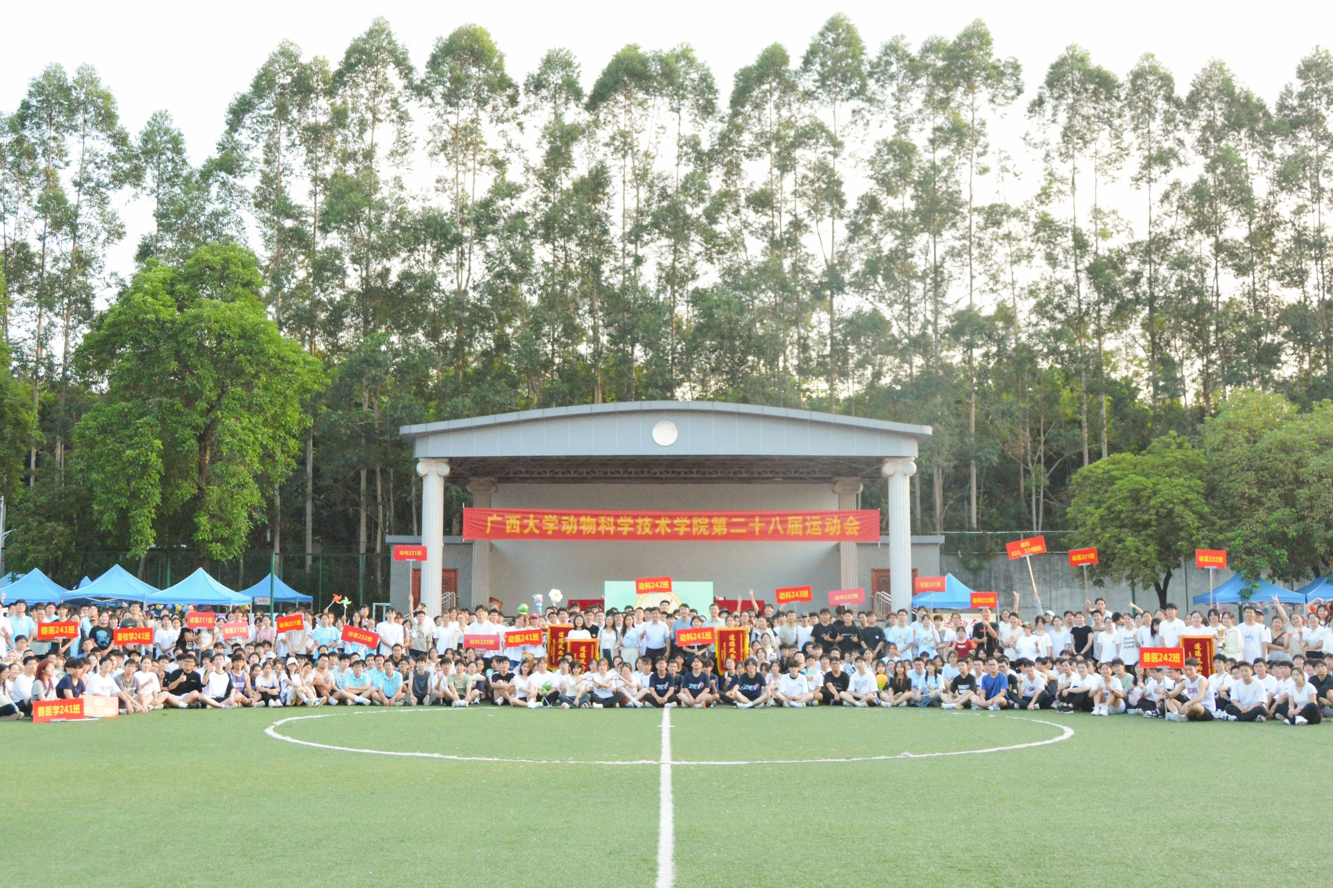 10月20日,太阳成集团tyc234cc第二十八届运动会在北校园田径场隆重举行。动物科学技术公司党委书记韦小强,经理陆阳清,党委副书记沙建,副经理何家康,动物科学系主任李辉,团委书记李丽娜,团委副书记刘诚,辅导员崔月明、邹佳琪、马朝阳、陆维鸿,双胞胎集团桂南省区公司总经理李朝军,人资经理李德旋,以及全体本科生、研究生参加此次活动。
