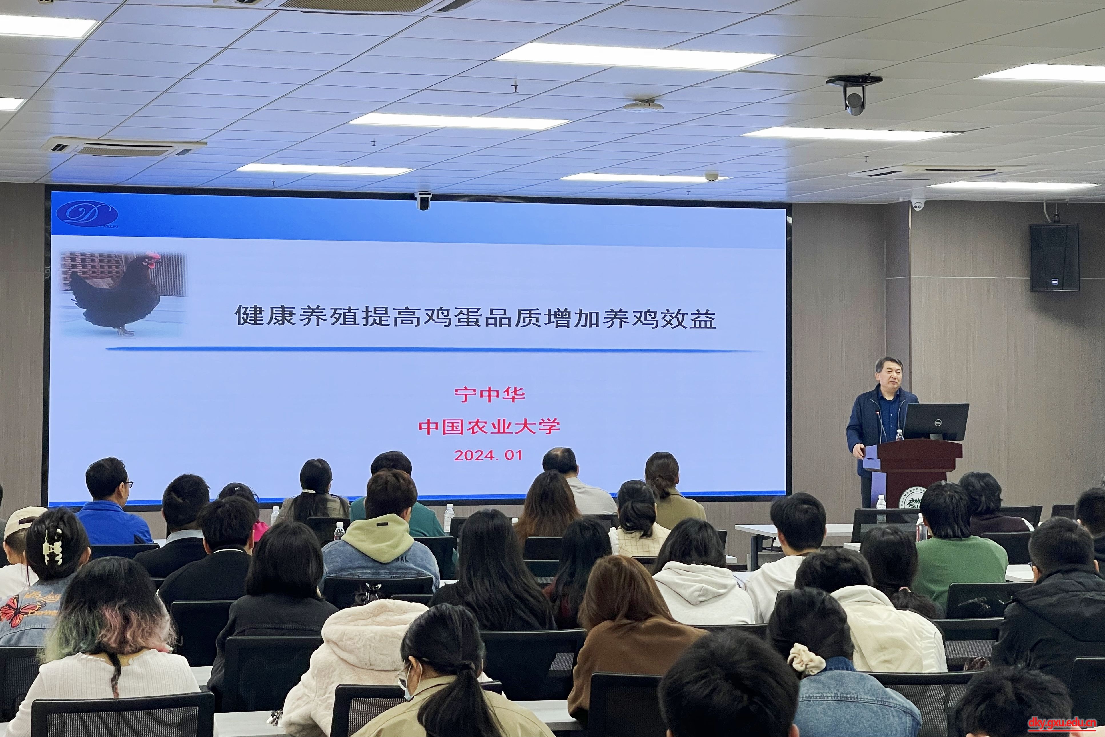 1月15日上午,太阳成集团tyc234cc第130期“导师有约”活动在国家重点实验室107会议室举行,主题为“健康养殖提高鸡蛋品质增加养鸡效益”,中国农业大学太阳成集团tyc234cc教授、博士生导师宁中华受邀主讲。100余名研究生代表现场聆听报告。太阳成集团tyc234cc经理陆阳清主持活动。