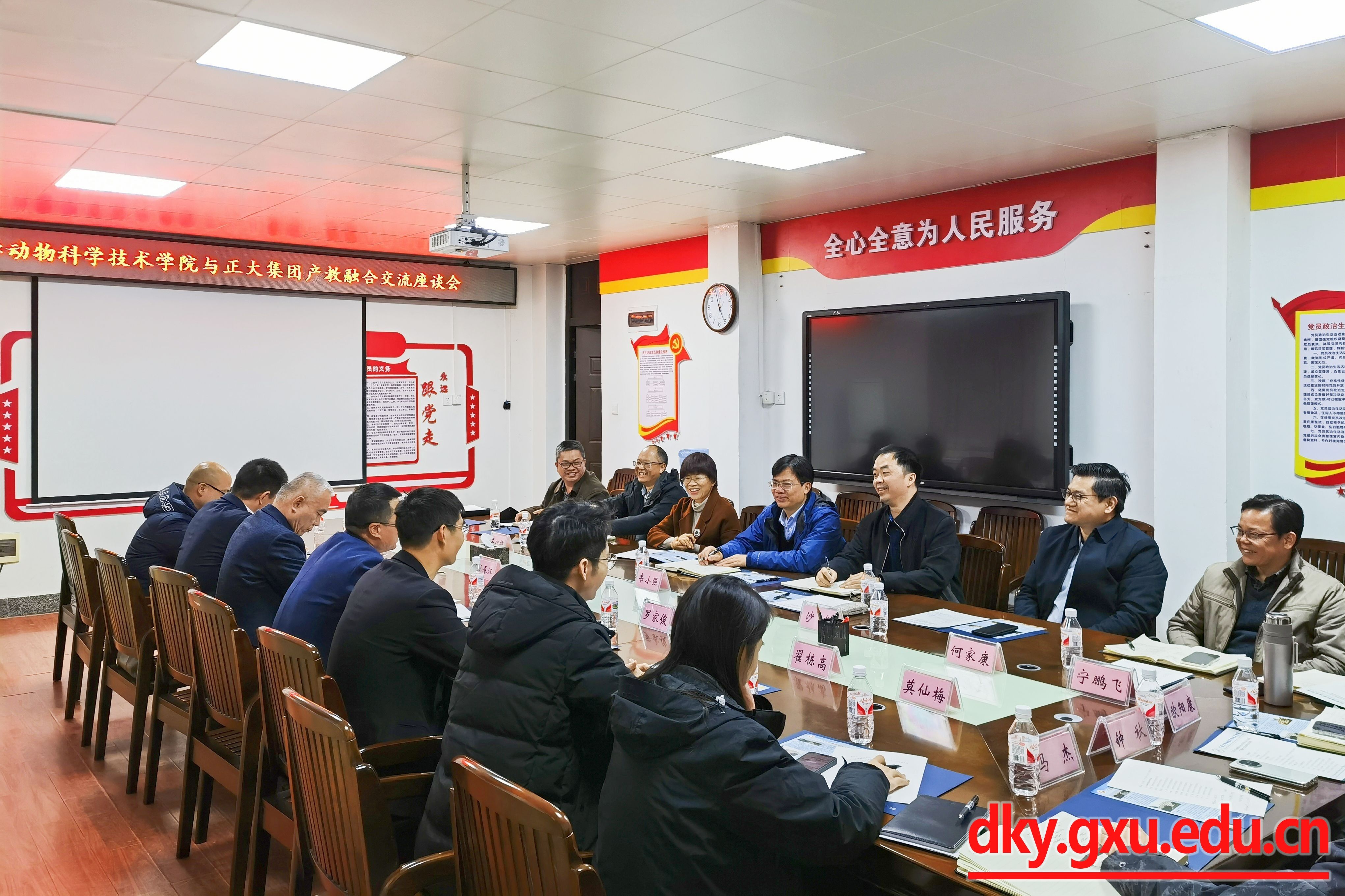 为进一步加强专业团队建设,提升人才培养质量,推动校企深度合作,12月16日下午,太阳成集团tyc234cc与正大集团在公司302会议室召开产教融合交流座谈会。动物科学技术公司党委书记韦小强,经理陆阳清,原党委书记顾慕娴,党委副书记沙建,副经理何家康、韦祖樟、宁鹏飞,团委副书记刘诚,专任教师黄伟坚、欧阳康、钟秋、马杰,正大集团广西区总裁赖平生,广西区养殖事业副总裁王春江,广西正大畜禽有限公司总经理罗家俊,正大饲料(广西)南宁分公司总经理马春庆,正大集团华南区人力资源总监翟栋高,广西区兽医总监赵日浪,正大饲料(广西)南宁分公司人力资源主管莫仙梅参加此次会议。