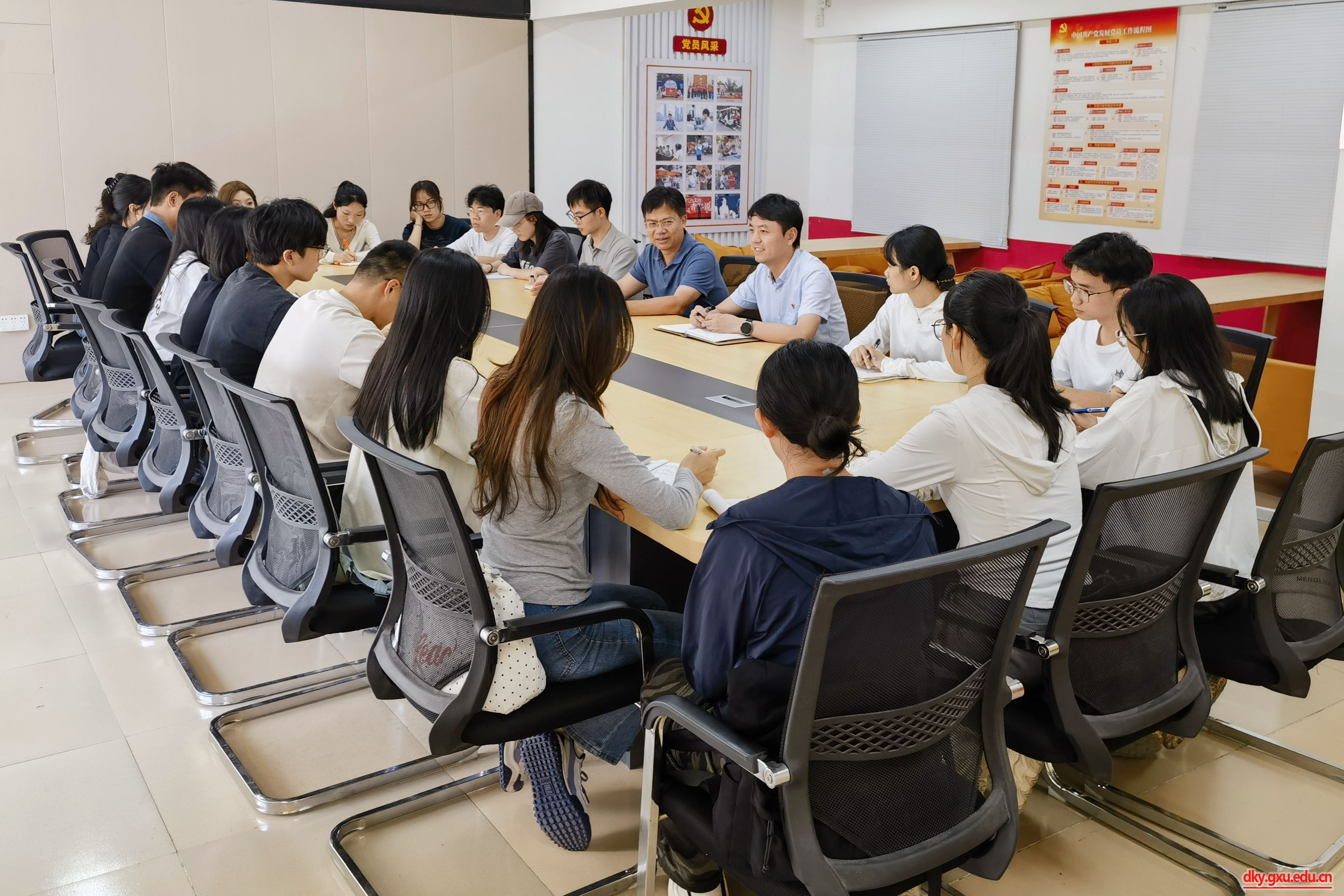 韦小强书记认真听取了员工代表的发言,并从“为何报考选调生”“如何备考选调生”“怎样当好选调生”等方面与同学们进行了深入交流。他强调,作为定向选调生,应该做到坚定信念、守好初心,切实贯彻党的根本工作路线、方针、政策;主动学习、练好本领,努力提升表达能力、组织能力和调研能力;扎根基层、干好工作,着力解决人民群众的急难愁盼问题。