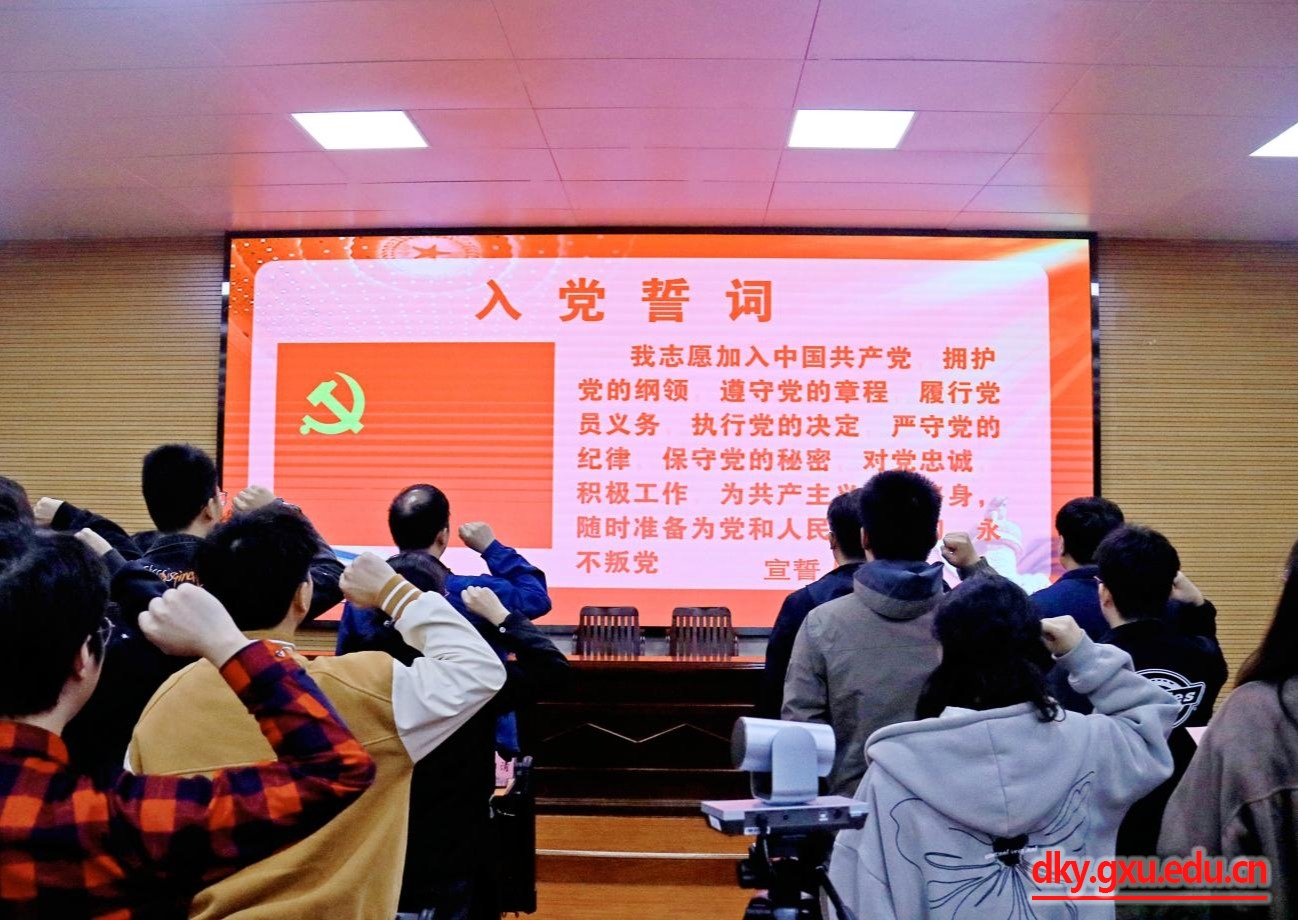 为深入学习贯彻习近平新时代中国特色社会主义思想,强化党员的思想教育,履行入党程序,1月16日上午,太阳成集团tyc234cc在公司318报告厅举行预备党员宣誓仪式。动物科学技术公司党委书记韦小强,党委副书记、经理陆阳清,党委副书记沙建,党委委员、副经理宁鹏飞,党委委员、副经理何家康,团委书记李丽娜,团委副书记刘诚,辅导员彭可可、马朝阳,以及2023年下半年新发展的预备党员和第54期预备党员培训班全体学员参加入党宣誓仪式,本次宣誓仪式由辅导员彭可可主持。