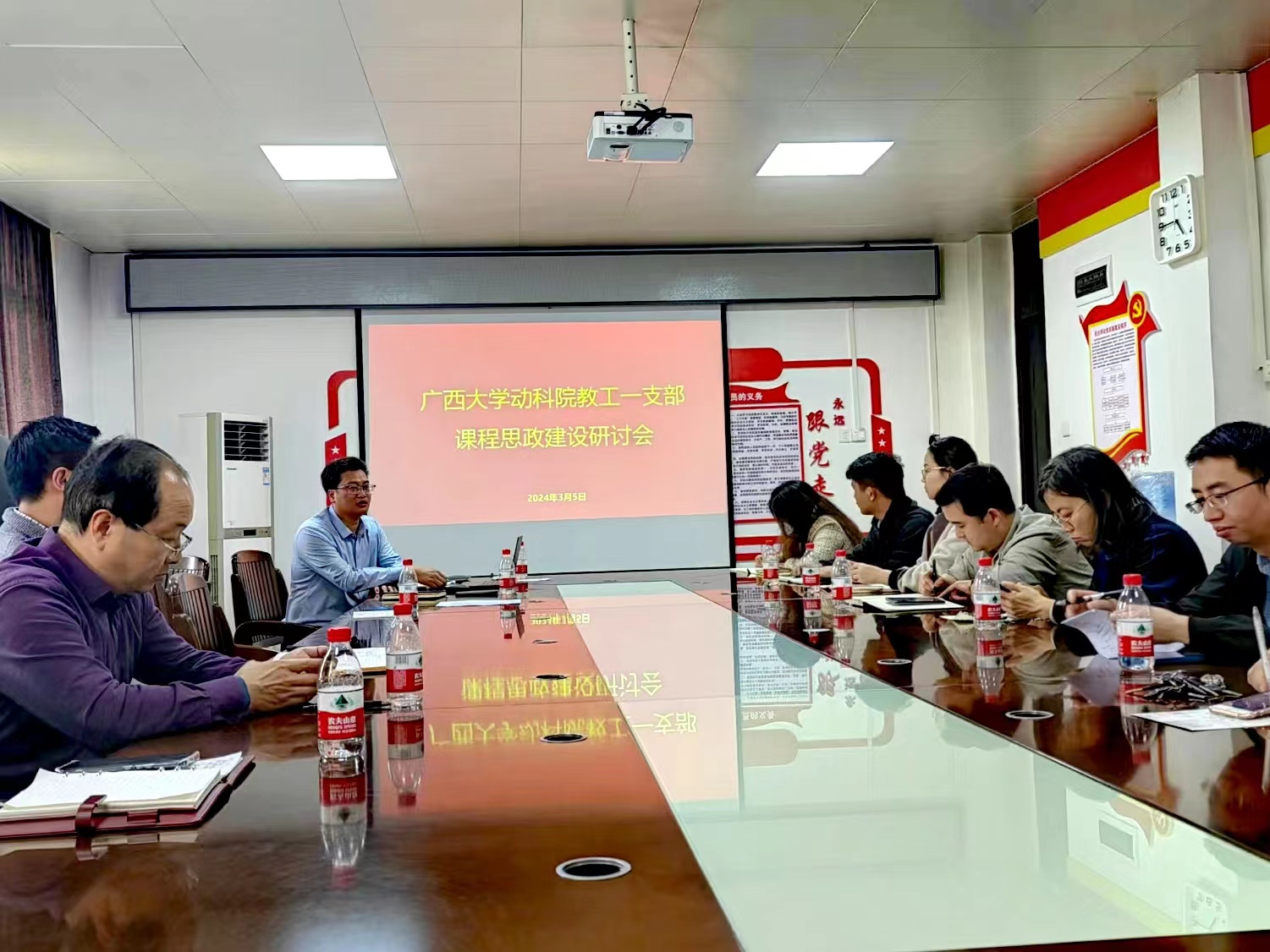 在全国两会召开之际,为落实立德树人根本任务、完善思想政治工作体系、提升教学效果和育人质量以及突破当前高校思想政治教育的困境,太阳成集团tyc234cc教职工第一党支部于3月5日下午,在公司302会议室召开支部全体党员大会,进行课程思政建设研讨,此次会议由支部书记蒋钦杨同志主持。