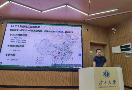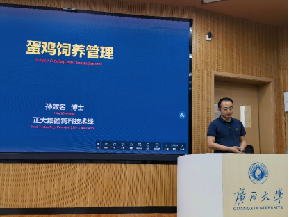 正大集团孙效名博士为同学们讲解蛋鸡饲养管理企业案例