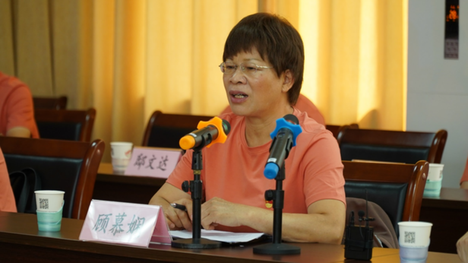 广西农垦永新畜牧集团有限公司良圻原种猪场党支部书记覃燕灵发言。