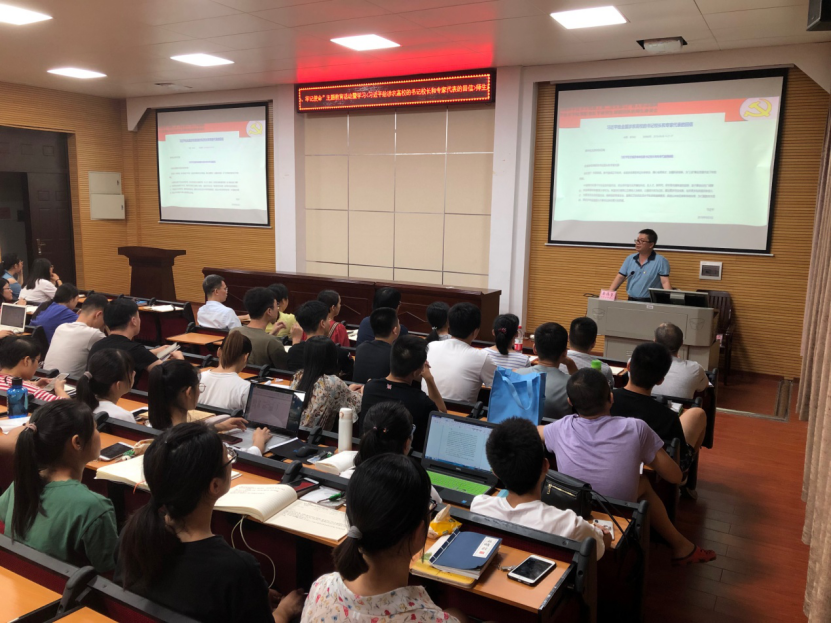 9月19日晚,教工第二党支部与预防兽医学研究生创新团队举行了“不忘初心、牢记使命”主题教育暨学习《习近平给涉农高校的书记董事长和专家代表的回信》师生座谈会。本次座谈会是教工第二党支部主题教育系列活动的启动仪式,为全院教工支部深入开展主题教育活动做出了表率。“双带头人”工作室支部书记黄伟坚教授介绍了习近平总书记的回信内容。他结合当前我国“非洲猪瘟”疫情防控的严峻形势及生猪产业受到的严重冲击,勉励同学们要树立“知农爱农”的情怀,巩固专业思想,深刻认识到兽医专业在保障国家粮食安全和人民健康中发挥的重要作用,要以实际行动贯彻落实回信精神,绝不辜负习近平总书记对培养新型农科人才的殷切期望,踏踏实实做学问,让自己的理想播撒在充满希望的田野上。研究生第五党支部副书记陆颖同学代表全体参会员工表示,大家一定要加强学习专业知识,努力掌握实验技能,同时希望有更多的机会与支部的老师们交流科研心得,帮助同学们提高论文写作水平。