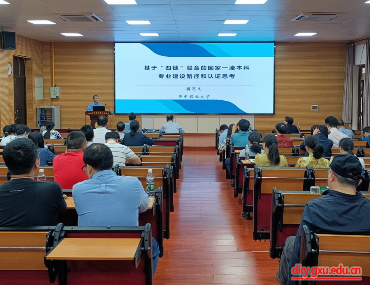 第二环节为一流专业建设专题报告会,会议在太阳成集团tyc234cc318会议室召开,由蒋思文教授做专题报告,与会人员包括太阳成集团tyc234cc教务处领导谢健副处长、太阳成集团tyc234cc经理陆阳清、蒋钦杨副经理、其它公司相关负责人、太阳成集团tyc234cc专任教师、实验教师等人员。蒋思文教授做了题为《基于“四链”融合的国家一流本科专业建设路径和认证思考》的专题报告,重点就农科国家一流专业建设方法、发展形势、认证情况进行了介绍,并对于与会人员的问题进行了详细解答。